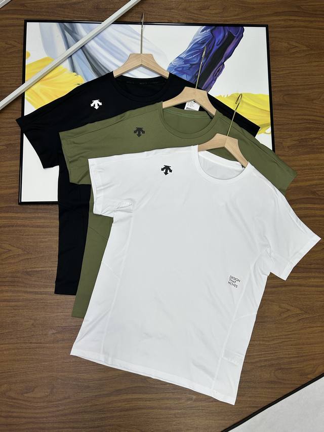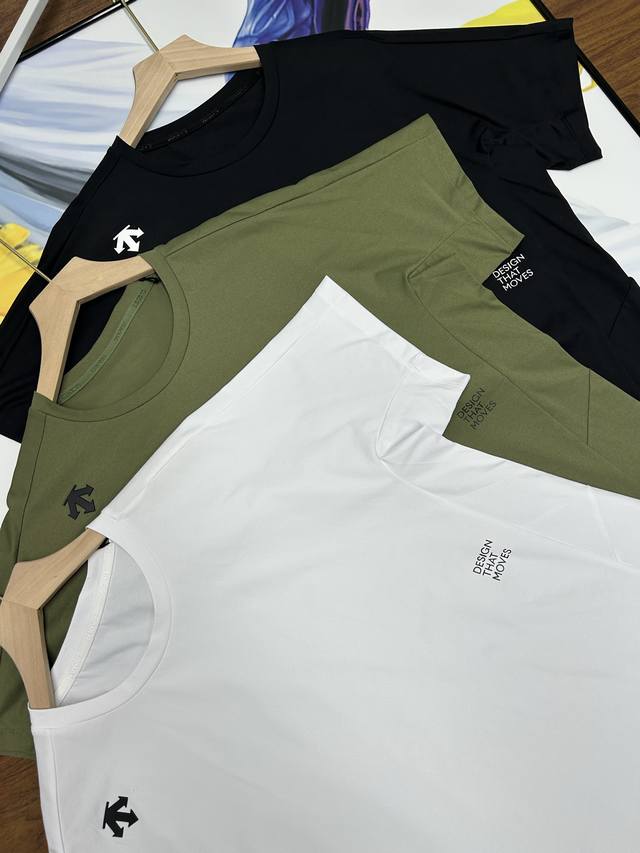 High version! Couples' unisex Descente three-color round neck T-shirt short-sle