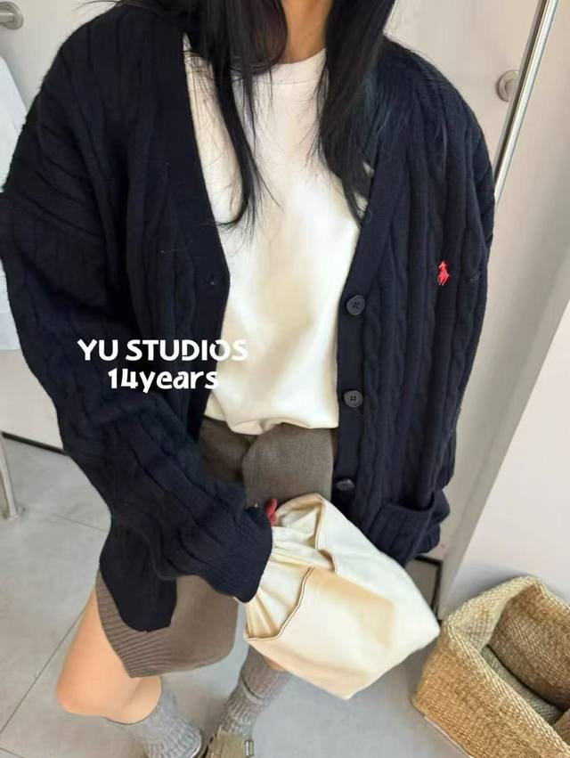Polo Ralph Lauren preppy style pony embroidered cable knit cardigan