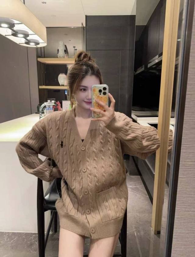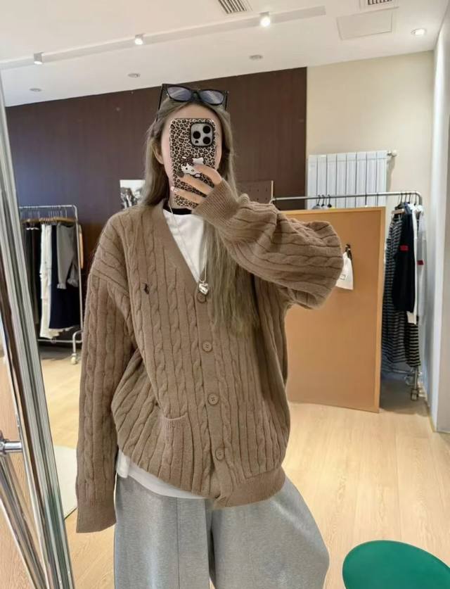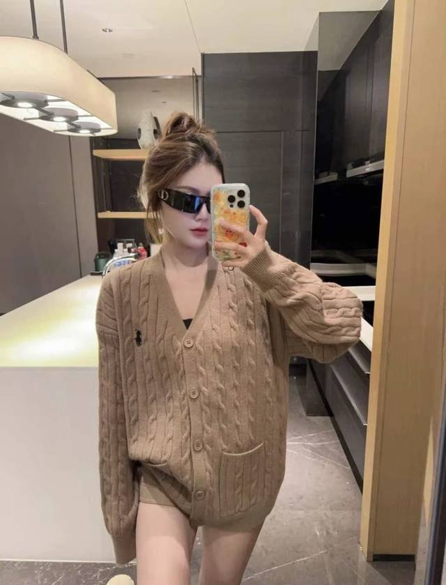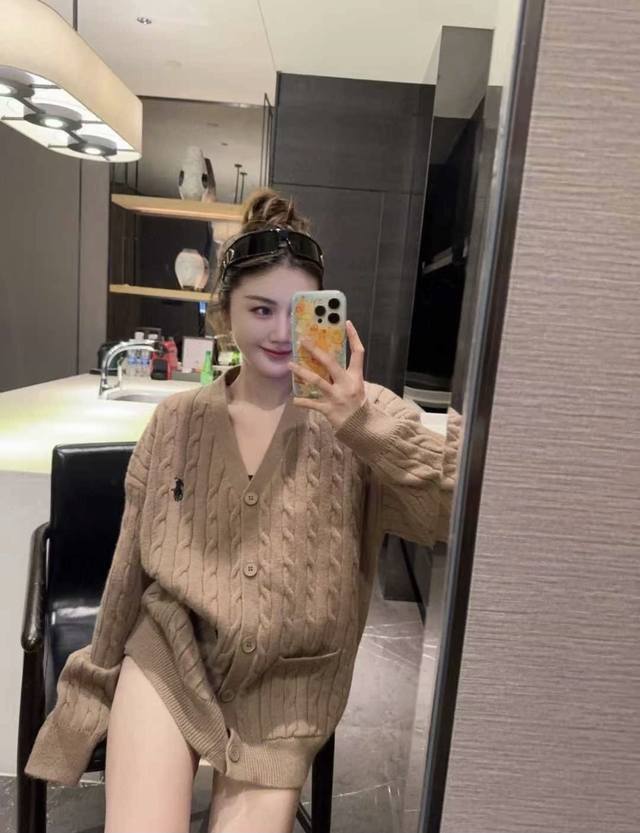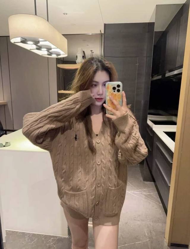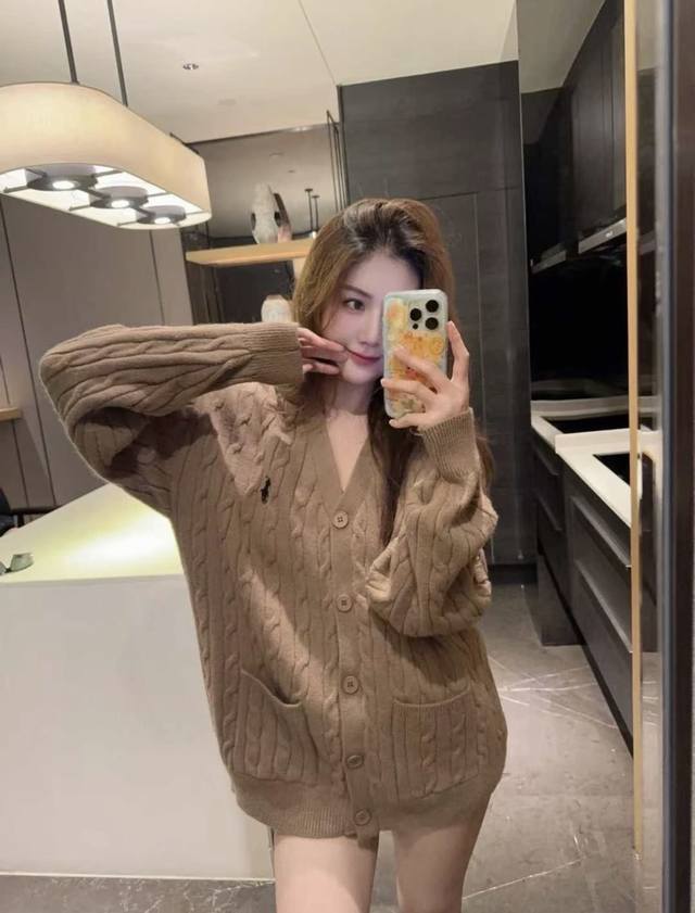 Polo Ralph Lauren preppy style pony embroidered cable knit cardigan