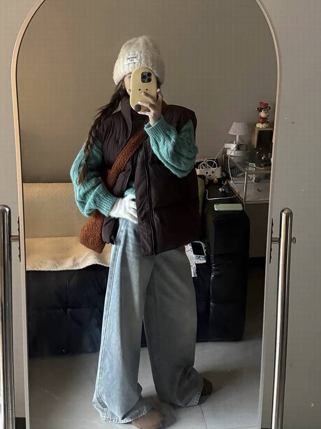 Autumn-flavored pony brown vest Look