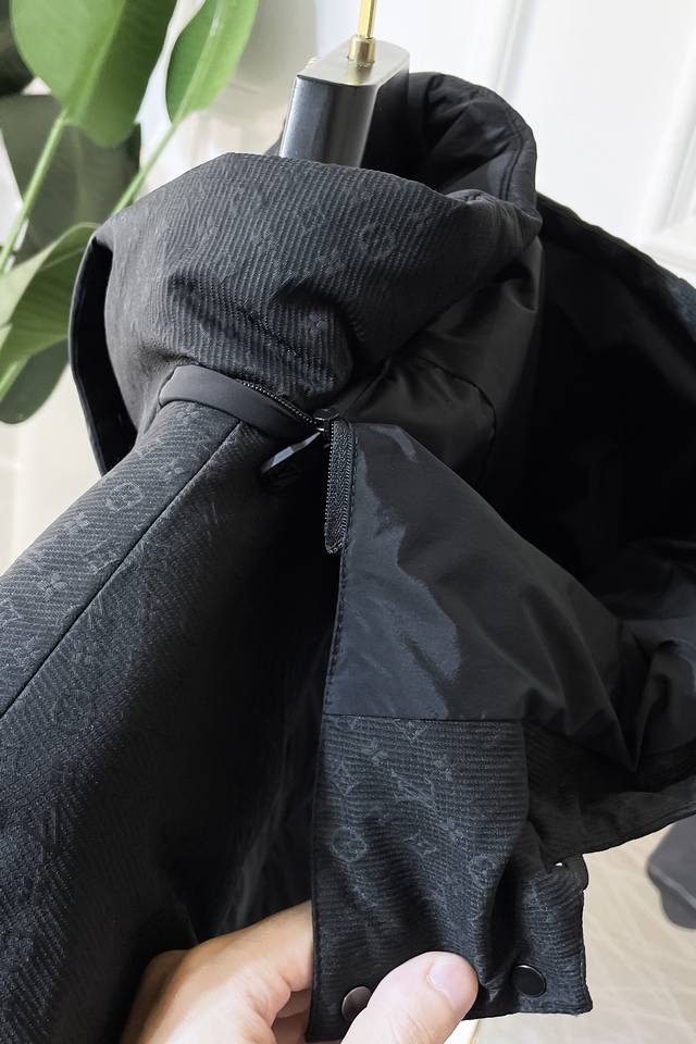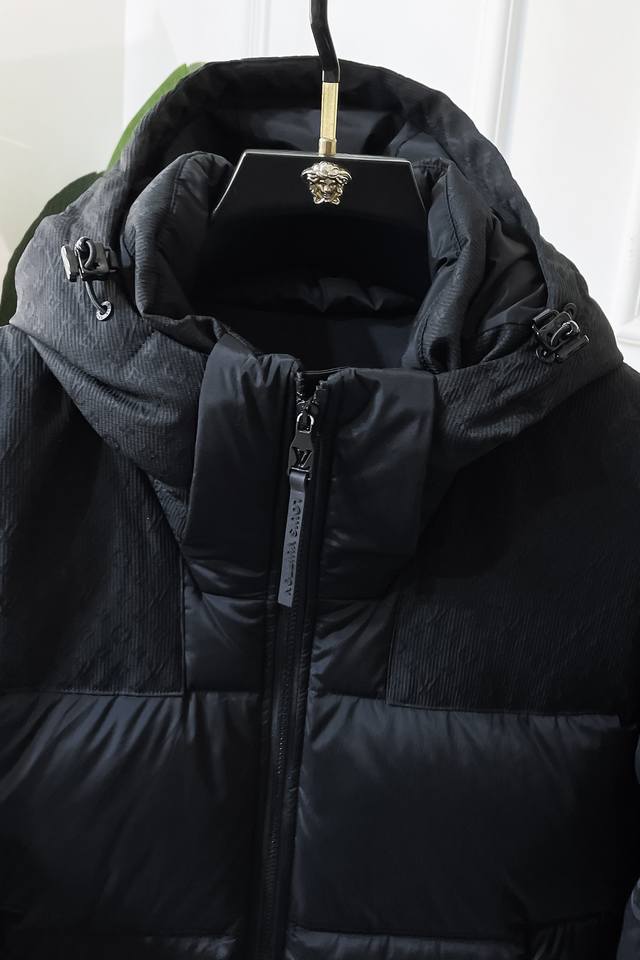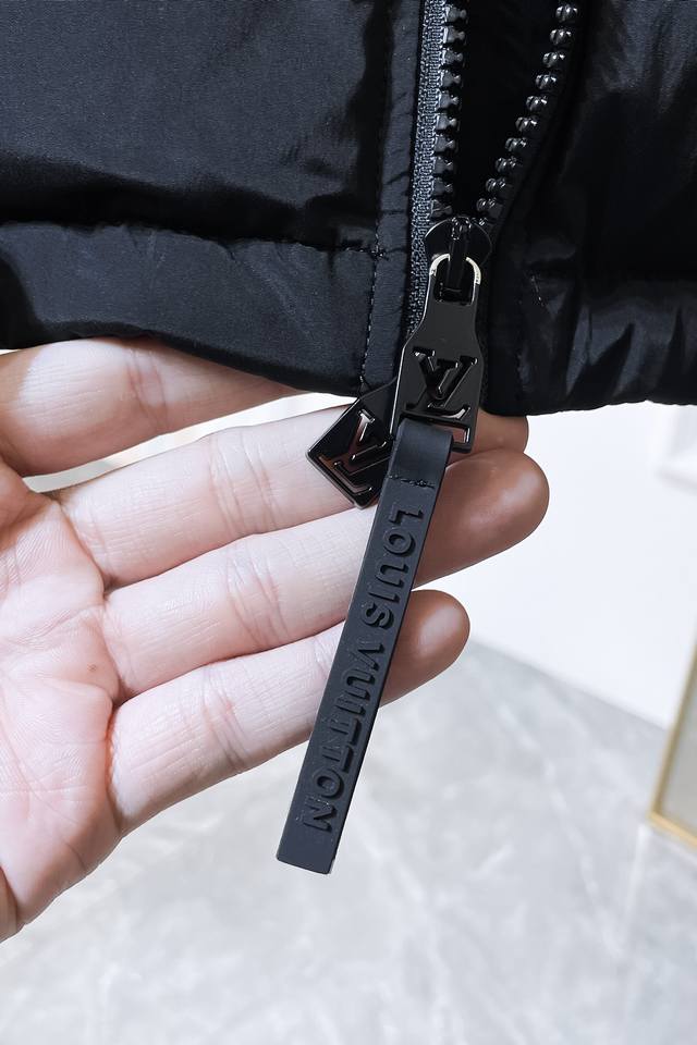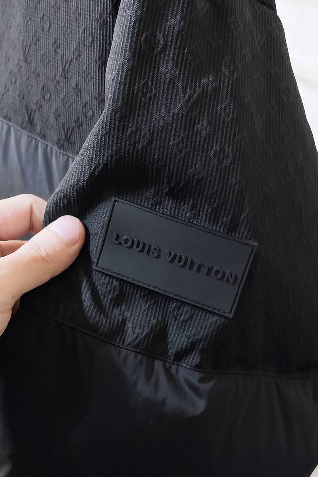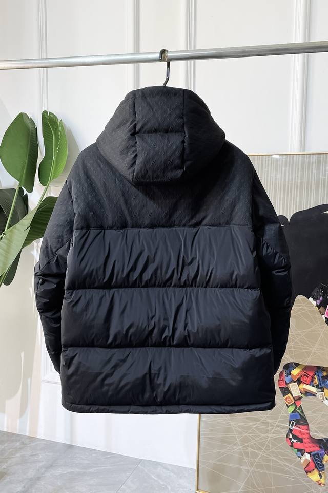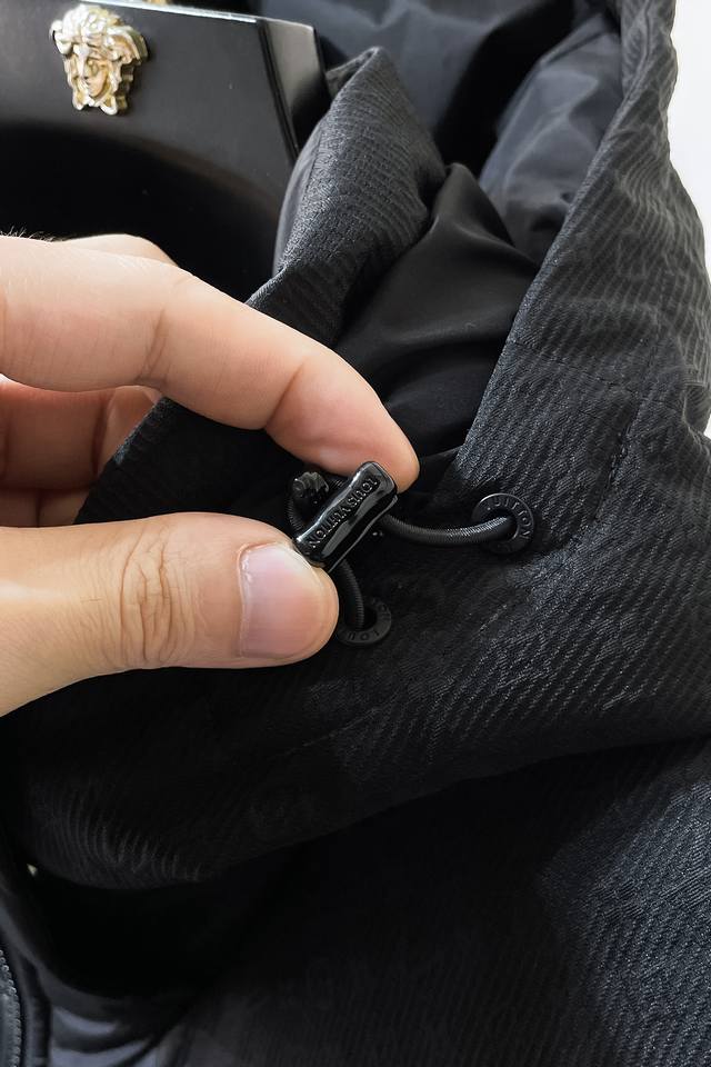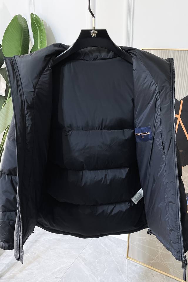 Highest Version! Pay attention to details! Compare with the high-end version and recognize the details. 1V25Fw Autumn/Winter New Style Dark Pattern Monogram Spliced Zipper Down Jacket, Unisex Style, Rubber Nameplate on Sleeves, Detachable Hooded Stand Collar! Rare from trading company channels, sold simultaneously with the official website! V-brand's new down jacket is a hot fashion item this winter. This one not only has excellent warmth performance but also incorporates the brand's classic elements, showcasing a unique and fashionable high-end feel! DDD fabric uses a custom-supplied high-density technical fiber blend material, which has superior windproof, waterproof, and down-proof capabilities! This means that in the cold winter, you can wear it with confidence, whether it's raining or snowing heavily, you can stay dry and warm! The shoulders and sleeves use a three-dimensional monogram dark pattern fabric for splicing, and the collision between the two different fabrics creates a fashionable and high-end visual effect! This design not only adds to the overall sense of layering but also makes you stand out when wearing it! The Ddd jacket is filled with imported European standard 90% white goose down, using a horizontal quilting process to create a full and fluffy texture. This provides ample warmth while maintaining a lightweight feel, ensuring maximum comfort and freedom of movement. The zipper pulls on the placket and the rubber nameplates on the sleeves, along with the brand logo-engraved hardware, showcase luxurious and meticulous details. The casual and versatile design, along with the detachable hooded stand collar, allows both men and women to easily create different styles, making you the center of attention in various occasions. Comes with a high-end dust bag packaging. Color: Black Sizes: 48-56