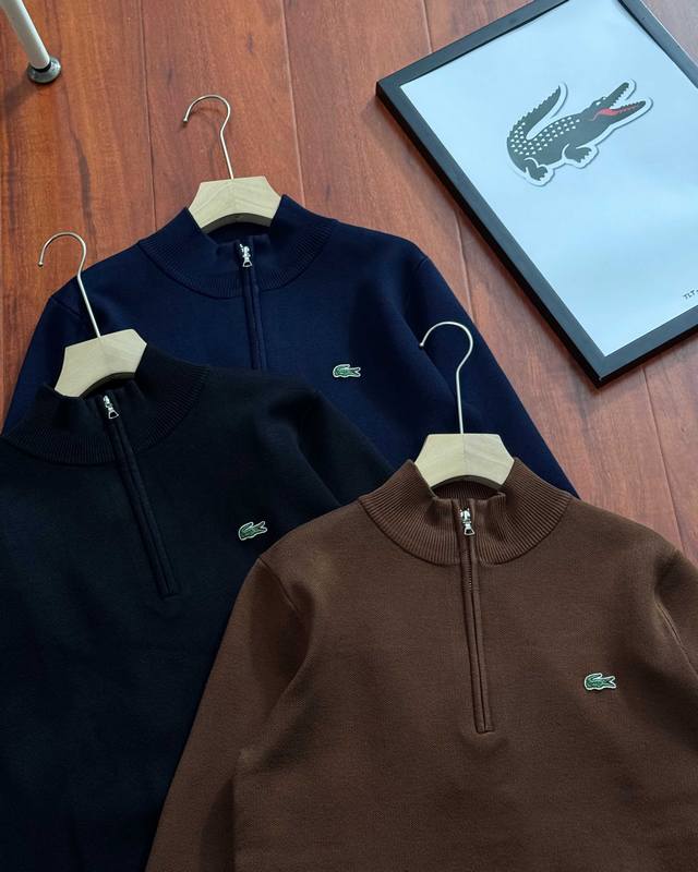 High-quality 1:1 replica of the Lacoste classic half-zip knit sweater, the same style as in department stores. New official website model, thickened quality, incredibly vibrant color and versatile. Department store fabric and cut model! 1:1 custom-made! High quality! High-weight version!! Extremely hard to find! This classic Lacoste half-zip knit sweater is made of pure cotton, incredibly soft and comfortable against the skin! Custom-made logo on the zipper pull! The color is very accurate, even better in person! Ribbed knit, high neck, perfect for autumn or winter layering, great for casual outings or commuting! Embroidered pony on the chest! Perfect for a sporty and casual look, easily paired with various casual pants, sweatpants, and jeans. Most importantly, high quality and a perfect fit! If you like the style, you don't need to worry about the quality! Feel free to compare! Color : Black, Royal Blue, Khaki Size: S-2XL Shoulder Width, Chest Circumference, Weight: S 45 107 95-120 lbs M 47 114 115-130 lbs L 49 123 130-150 lbs XL 51 132 150-170 lbs 2XL 54 141 170 lbs -
