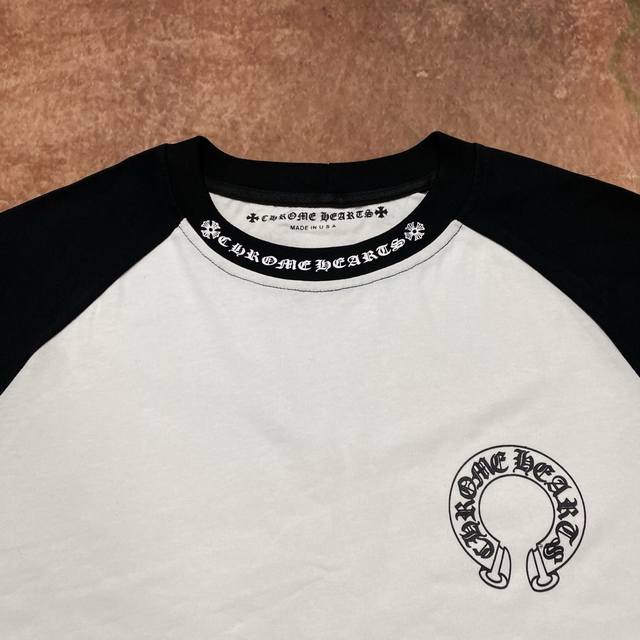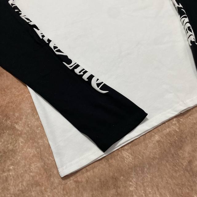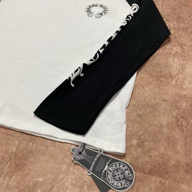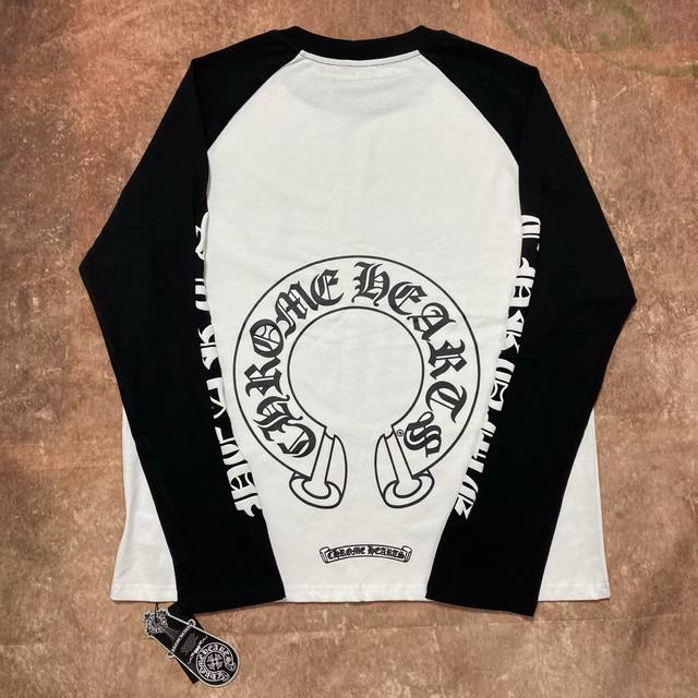 High-quality Comehearts-Ch cross and Sanskrit black and white patchwork print long-sleeved top, high-grammage pure cotton fabric, size S, M, L, XL.