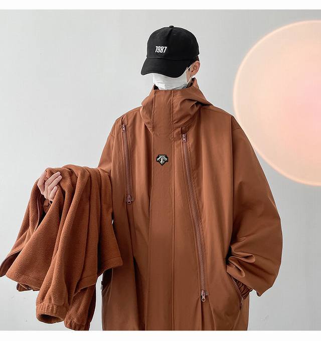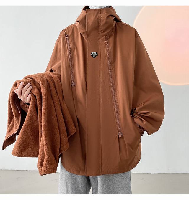 High-quality Descente 25Ss Autumn Five-Color Detachable Fleece-Lined 3-in-1 Waterproof Outerwear with Inner Zipper that Can Be Zipped Together. Loose fit, perfect details, woven fabric, wear-resistant and dirt-resistant, three-dimensional tailoring, loose fit, three-dimensional TPU label that will not crack or fall off after repeated washing. Unisex, couple style. Colors: Black, Red, Apricot, Coffee, Fruit Green. Sizes: S-5XL.