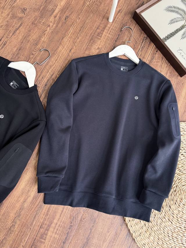 High-quality Lulu Men's Winter Fleece-Lined Crew Neck Sweatshirt: An essential item for a warm winter. With winter approaching, the Lulu Men's Winter Fleece-Lined Crew Neck Sweatshirt boasts triple advantages: warmth, quality, and versatility, making it a must-have in every man's wardrobe. The outer layer is made of a carefully selected cotton blend fabric, dense, delicate, wrinkle-resistant, and durable. It retains its shape and color even after multiple machine washes, balancing practicality and durability. The inner lining features a one-piece fleece design, directly woven from yarn, offering a soft and skin-friendly feel, completely eliminating any itching sensation when worn close to the skin, like being wrapped in a warm blanket. The dense and compact fleece provides excellent insulation and warmth retention, flexibly adaptable to being layered as an inner base layer or worn over a down jacket, eliminating the bulkiness of layering. The classic crew neck design is simple and stylish, flattering all face shapes. The reinforced collar edge ensures it won't loosen or turn outwards even after repeated wear and removal, showcasing quality in the details. The relaxed fit accommodates different body types, providing a comfortable and unrestricted feel during movement. Available in classic black and navy blue, these shoes are durable, versatile, and easy to match with various outfits. Pair them with jeans for a casual and relaxed look, or with cargo pants for a sharp and stylish appearance. They're perfect for commuting, casual outings, parties, and more. The understated design reveals clever details, combining warmth and style. Color: Black, Blue Size: L