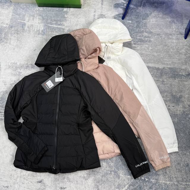 High-quality Lululemon 25Ss Women's Down For It All Slim Fit Hooded Down Yoga Outdoor Sports Jacket. A winter essential for women, available in various colors, slim fit, accentuates curves, warm yet not bulky