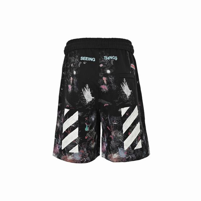 High-quality Off White 17Ss Starry Fireworks Splatter Striped Shorts. Arguably Off White's most popular shorts, seemingly chaotic, they look incredibly good in photos and on the body. These shorts feature complex and highly difficult-to-make craftsmanship. The print is a 3D print on the front and back, distinguishing them from common market versions! The 3D cut offers a comfortable fit, with an elasticated waistband and drawstring for easy adjustment! Made of terry cloth fabric, with engraved hardware, and all accessories and tags included. Attention to detail is evident. Unisex style. Sizes: S-XL