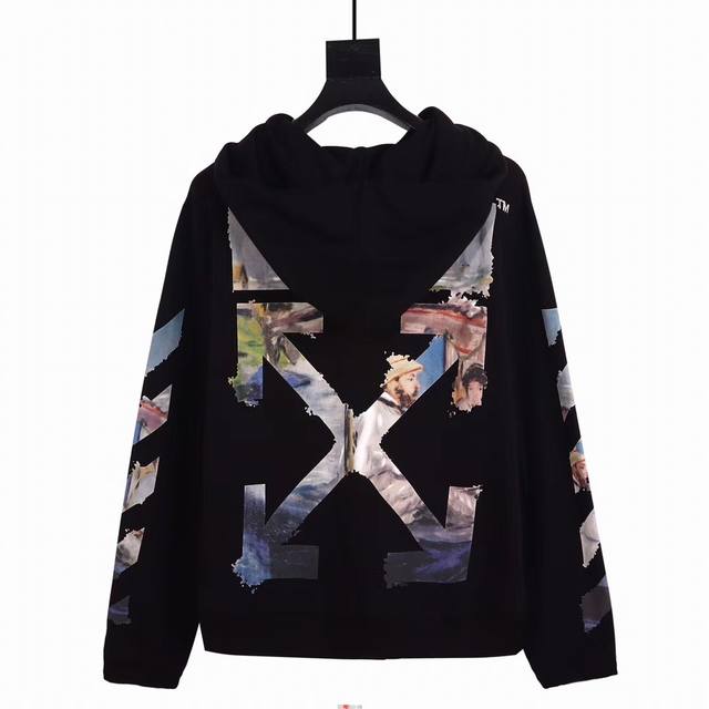 High-quality Off-White CO Virgil Abloh 19Ss Monet oil painting arrow print cardigan, unisex, a timeless bestseller. Made with high-weight pure cotton terry cloth fabric, high-definition digital printing using imported German machines, environmentally friendly materials, pure colors, clear images, and high-temperature heat transfer printing for enhanced print quality