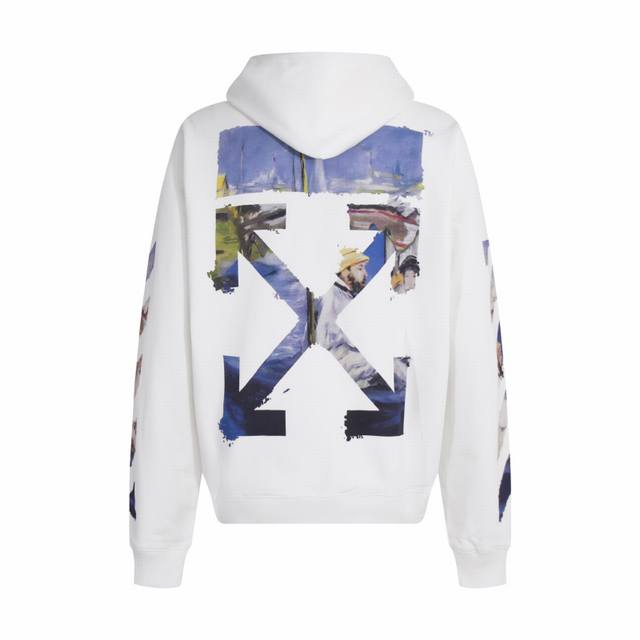 High-quality Off-White CO Virgil Abloh 19Ss Monet oil painting arrow print hooded sweatshirt, unisex, a timeless bestseller. Made of 420g heavyweight cotton terry fabric, printed with high-definition digital printing on German-imported machines, this eco-friendly material ensures pure color and crisp images. High-temperature hot stamping reinforces the print, ensuring it never fades or cracks! Custom metal hood cord, washing tag, and other accessories are standard, ensuring meticulous attention to detail. The sleek, comfortable fit is perfect for any occasion. Sizes: S-Xl