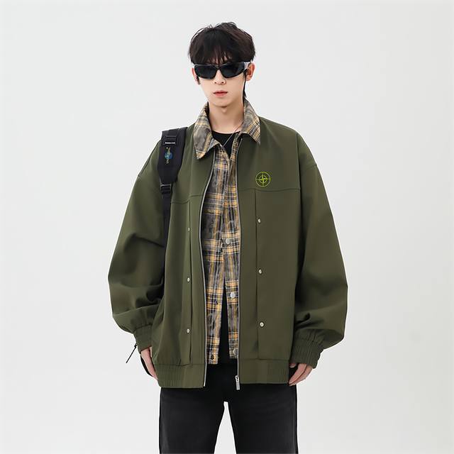 The jacket has a loose fit, perfect details, woven fabric that is wear-resistant and dirt-resistant, three-dimensional tailoring, loose fit, three-dimensional embroidered patch label that will not crack or fall off after repeated washing, unisex style, couple style