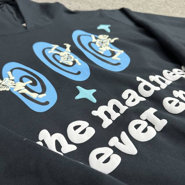 Hooded BP-H209#Broken planet The Madness Never End. Broken planet, fun foam print. Double-needle reinforcement on all cuffs, hem, and neckline. Hidden side pockets. Side bar stitching. Specially reinforced sleeve embroidery. Custom-knitted. Colors: Black, Royal Blue. Sizes: S, M, L, XL.