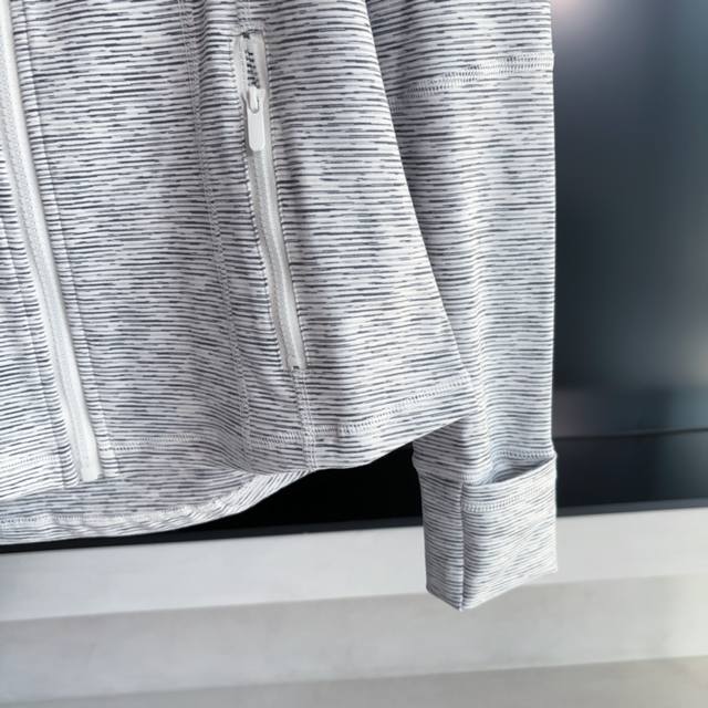 Super super slimming! For yoga, you can simply wear yoga pants; for everyday outings and shopping, you can pair it with cargo pants, cargo skirts, or short skirts and jeans. This is a versatile and comfortable style. The cuffs even have thumb holes. The curved panel on the chest is beautifully crafted! The curved panel on the back also creates a slimming effect! Color: Thin striped halo gray. Sizes: 6, 8, 10, 12. Recommended weight: Size 6 90-105 lbs, Size 8 105-115 lbs, Size 10 115 lbs, Size 12 - 145 lbs.