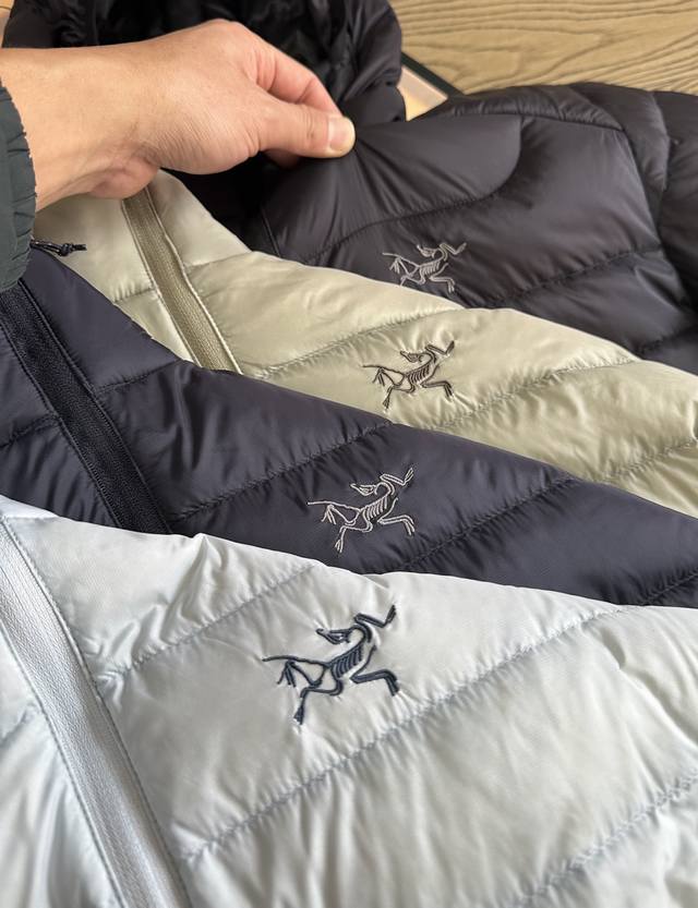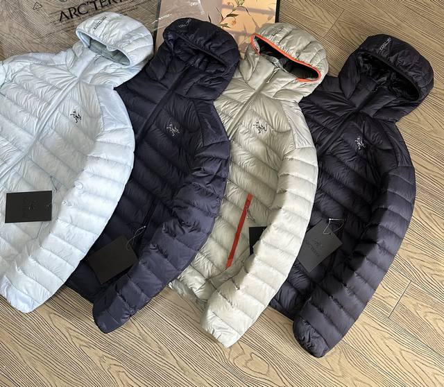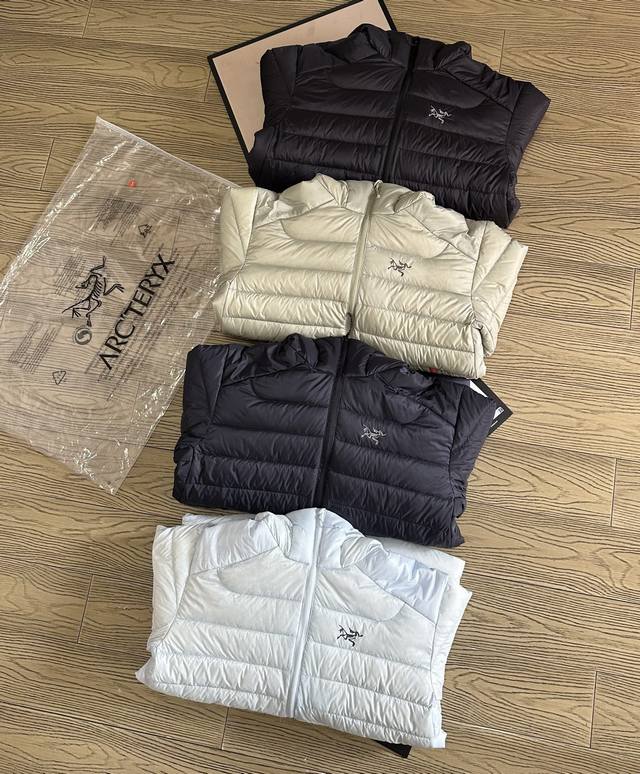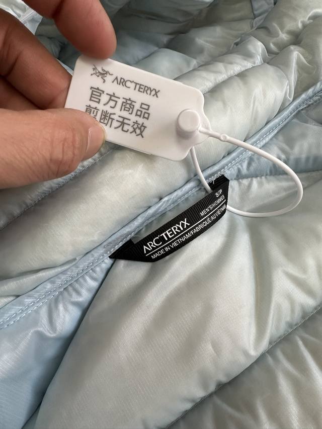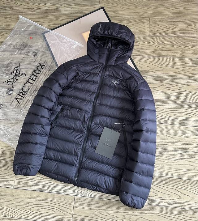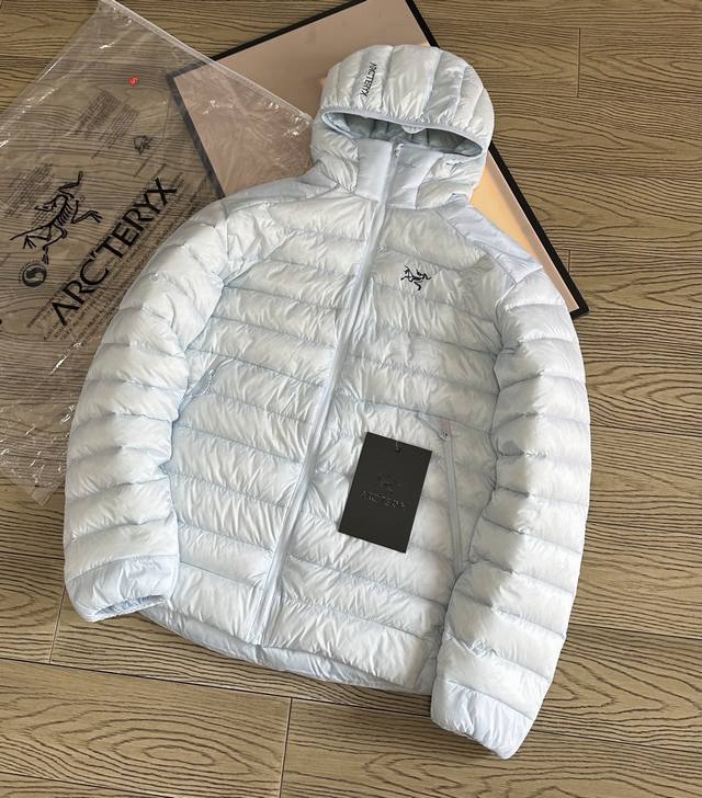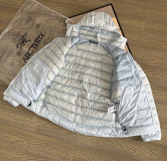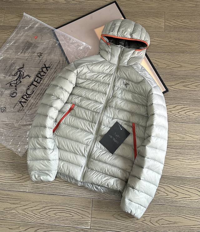Independent Order Ceiling Arc'teryx 90 Goose Down Jacket Cerium Vest Rib Series Hooded Goose Down Jacket DDD The entire down jacket is made of ultra-lightweight fabric and filling Ddd It can be easily rolled into its own pocket Ddd Forming a very small storage bag DDD The entire down jacket is made of ultra-lightweight fabric and filling, and can be easily rolled into its own pocket, forming a very small storage bag. When packed away, it's only slightly larger than a soda can and weighs an extremely light 250-300 grams, depending on the size. It takes up almost no backpack space, making it perfect as an emergency thermal layer. Colors: Smoky Green, Dawn Blue, Sapphire Blue, Black. Sizes: S, M, L, XL, XL. Recommended Sizes (Length, Shoulder Width, Chest): S 68 48 114 lbs (under 120 lbs), M 70 49 120 lbs (under 140 lbs), L 72 50 124 lbs (under 160 lbs), XL 74 51 128 lbs (under 180 lbs), XL 76 52 132 lbs (under 200 lbs).