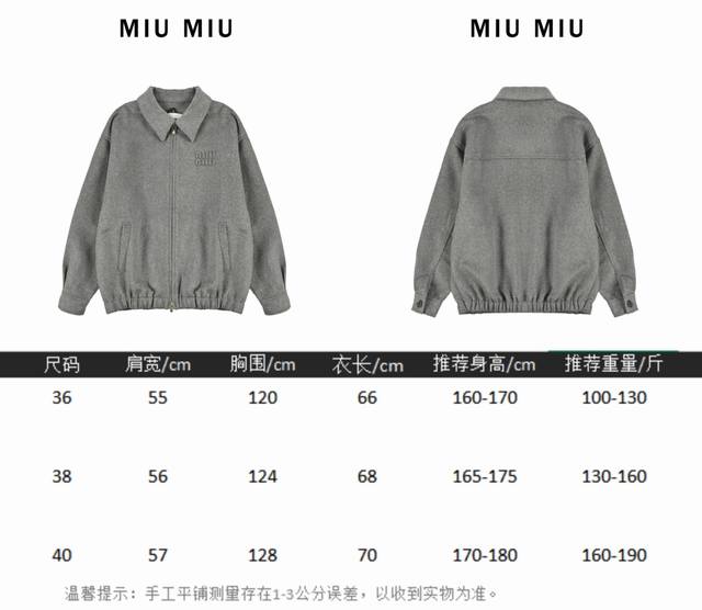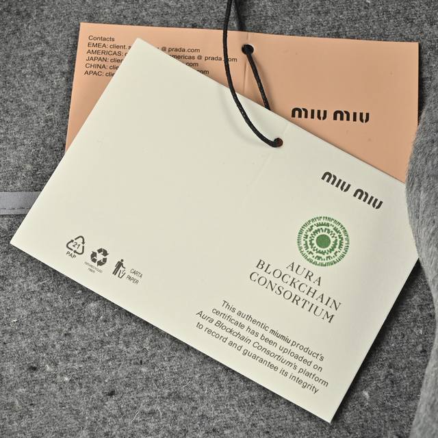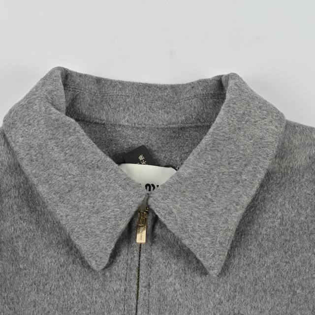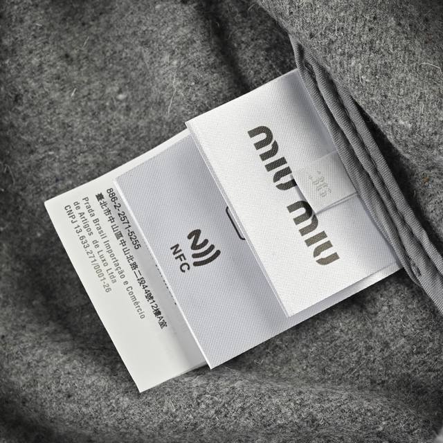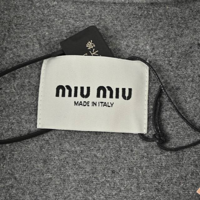 The fabric is made of 80% cashmere and 20% polyester fabric surface. The material weighs about 620 grams. Double-sided cashmere fabric is warmer on the upper body. Cashmere fabric has always been a leading representative of high-end clothing as an outerwear. Embroidery, with the brand Miu Miu brand logo embroidered on the chest, this process uses laser burning, and then manually measured and positioned one by one for fit, and computer recognition and positioning, the embroidery is firmly solidified with the clothes. The auxiliary zipper is electroplated gold, and the pull head is a No. 5 double pull head. The pull teeth are electroplated gold European style pull teeth. The embroidery buttons are real corner buttons. Each button has a different texture.