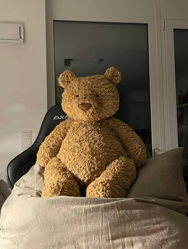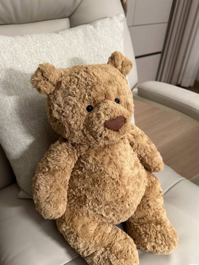 A chubby, loving bear. With its fluffy brown fur, Barcelo Bear is a reliable bedtime companion. Rest on its soft, furry belly.