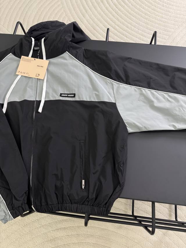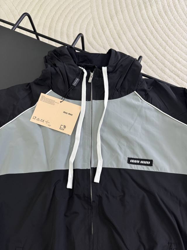 Miu Miu 25Fw Color Block Patchwork Windbreaker Jacket, Unisex, Essential for Daily Commute Wear, Correct Version, Free Comparison