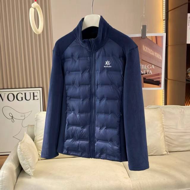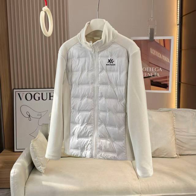 Kailas 25 Outdoor Autumn/Winter Lightweight Couple Down Jacket with Stand Collar. This lightweight outdoor down jacket features a down front and a fleece knit lining in the back, showcasing a lightweight design. The sleeves are also very well made; the soft, heat-retaining material feels like a baby's skin