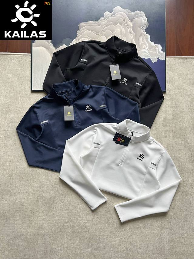 Kailas 25Ss Spring Hot Selling Half-Zip Outdoor Casual Long-Sleeve T-Shirt! Available simultaneously on the official domestic website. A stretchy and comfortable casual style, making sports and fitness more comfortable and stylish, with elasticity and no restriction! The 3D silicone logo on the chest is eye-catching and iconic, adding a more energetic and sporty feel. The smooth arrangement and 3D tailoring make it slimming and stylish. The elastic polyester fabric is skin-friendly, quick-drying, and breathable, with a silky and soft texture. Technical fabric training sports running long-sleeve shirt, making autumn fitness and sports more comfortable and enjoyable. The 3D tailoring makes it very comfortable to wear, slimming and without any sense of restriction. Combined with custom high-elastic polyester fabric, it has more room for stretching. The fabric is skin-friendly, comfortable, quick-drying, and does not irritate the skin. It has antibacterial and odor-resistant properties, making it one of the best fabrics for close-fitting wear. Strong 3D effect, smooth and without any burrs, unlike any other imitations on the market. Colors: Blue, White, Black. Size: See picture nine.