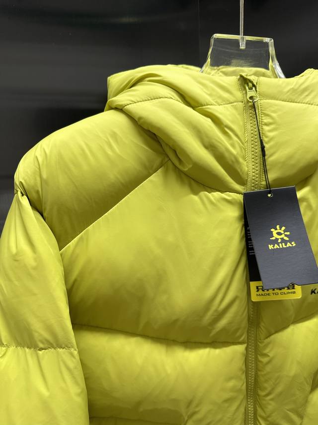 Kailas 5000Gt Windproof, Warm, Water-Repellent, Lightweight, Easy-to-Store, High-Altitude Hiking, Mountaineering, Outdoor Hooded Down Jacket, Unisex. Features: Zero-G Superfine High-Density Fabric: Made with Toray Industries' 10D diamond-patterned nylon fabric, weighing only 450 grams, offering excellent windproof, breathable, and warm performance. 1000 Fill Power Water-Repellent Duck Down: 90% down, filling weight varies from 162-236 grams. The water-repellent down retains its fluffiness and warmth even in humid environments. 3D Filling Structure: Utilizes a 3D filling process to allow the down clusters to fully expand and become fluffy, avoiding clumping and achieving even heat retention throughout the body. Water-Repellent Technology: A hydrophobic film forms on the surface of the down, resisting environmental moisture and sweat, maintaining long-lasting fluffiness and warmth. A very versatile design. Color: Yellow. Sizes: M-3XL.