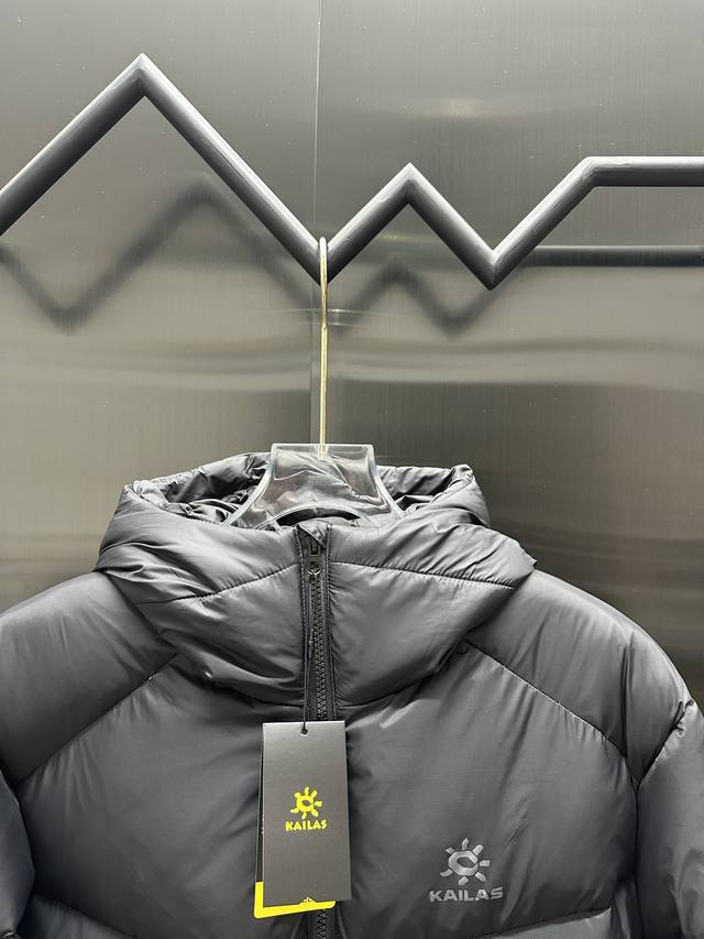 Kailas 5000Gt Windproof, Warm, Water-Repellent, Lightweight, Easy-to-Store, High-Altitude Hiking, Mountaineering, Outdoor Hooded Down Jacket, Unisex. Features: Zero-G Ultra-Fine High-Density Fabric: Made with Toray Industries' 10D diamond-patterned nylon fabric, weighing only 450 grams, offering excellent windproof, breathable, and warm performance. 1000 Fill Power Water-Repellent Duck Down: 90% down, filling weight varies from 162-236 grams. The water-repellent down retains its fluffiness and warmth even in humid environments. 3D Filling Structure: Utilizes a 3D filling process to allow the down clusters to fully expand and become fluffy, avoiding clumping and achieving even heat retention throughout the body. Water-Repellent Technology: A hydrophobic film forms on the surface of the down, resisting environmental moisture and sweat, maintaining long-lasting fluffiness and warmth. A very versatile design. Color: Black. Sizes: M-3XL.