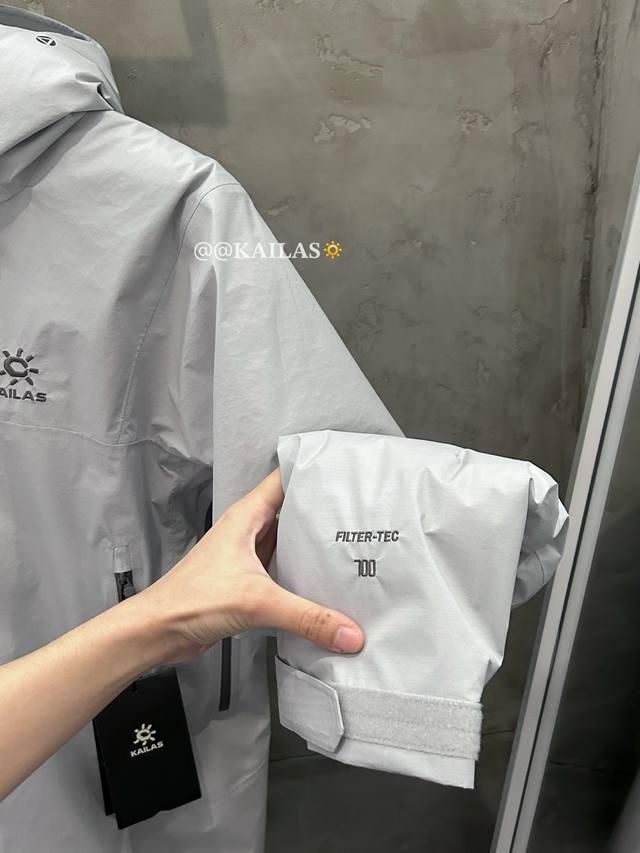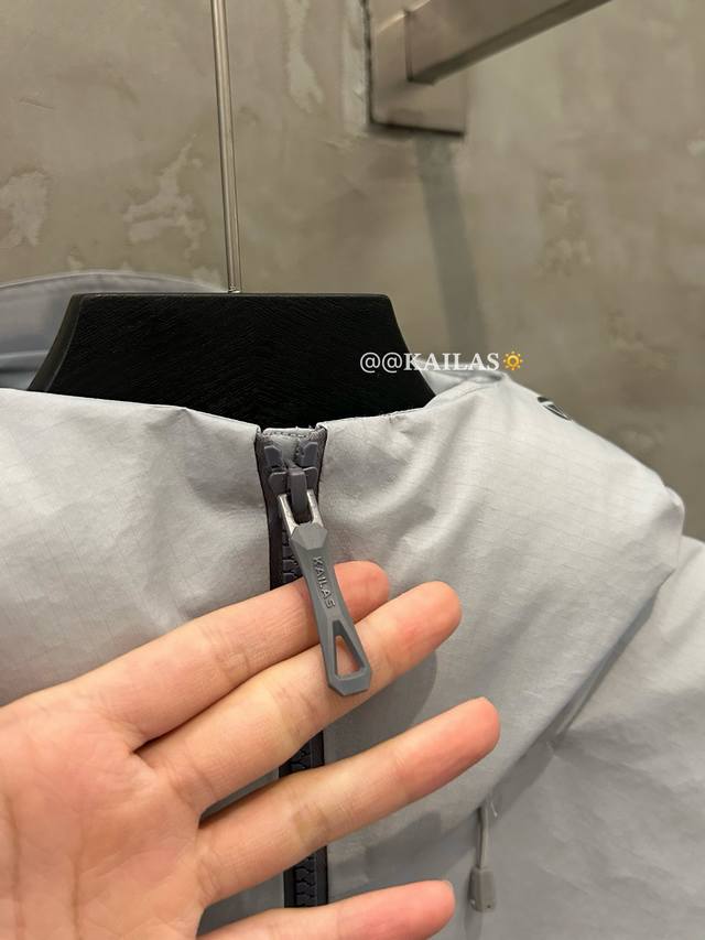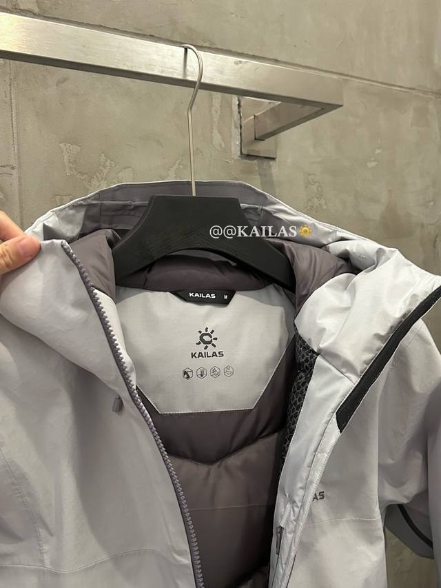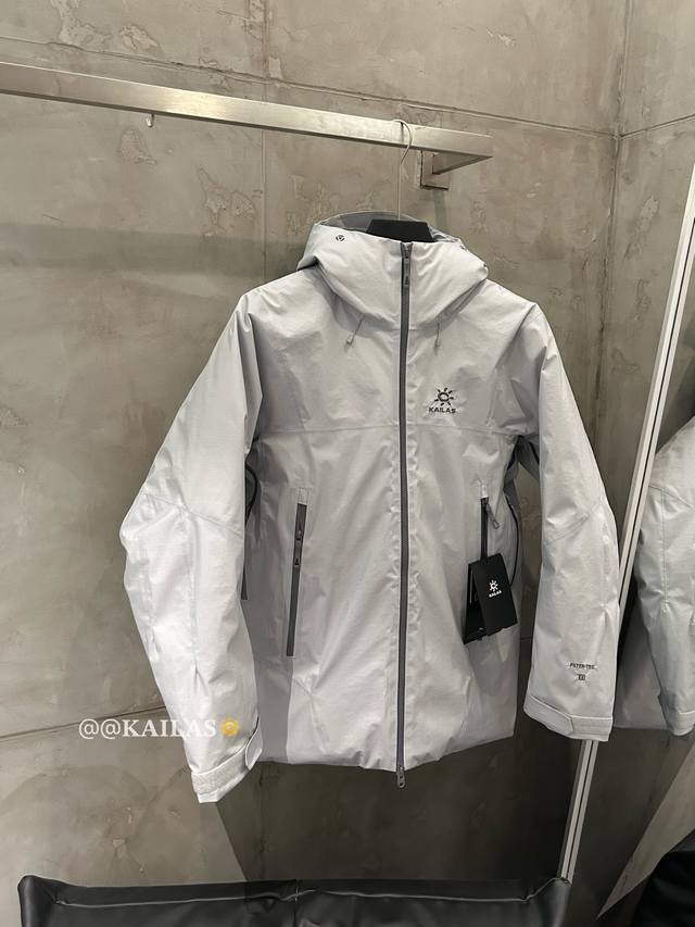 Kailas Aspen Goose Down Jacket, Grey and White Details. DDD