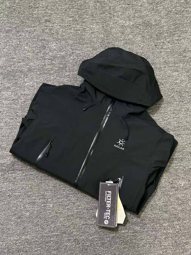Kailas Bogda Ltd Black Outdoor Tapered Hooded Jacket, V-neck, Breathable, Windproof, Waterproof, Hardshell. Distinguished from market Changshu, Hebei general merchandise, and Taizhou 1:1 replicas! Look for the high-quality version! Seven colors available, top-tier version.