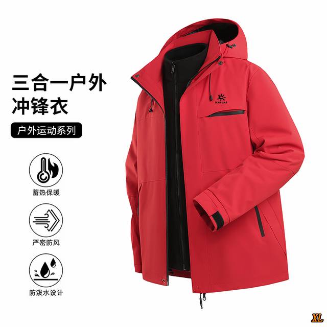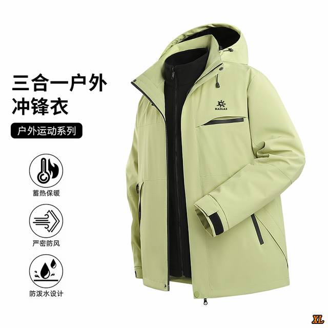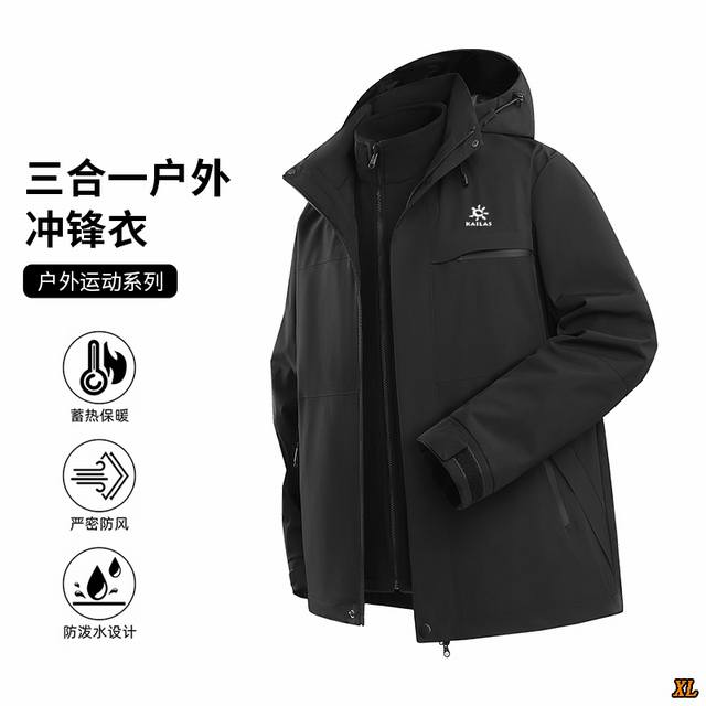 Kailas Exclusive Real Shot New Arrival Winter Outdoor Sports Waterproof Windproof Heat Retention Cooling Stain Repellent Anti-static 3-in-1 Windproof Waterproof Hooded Jacket/Windbreaker. This season's main product, ample stock, highly recommended, high-end quality, classic design, excellent workmanship, classic and versatile, excellent fit .
