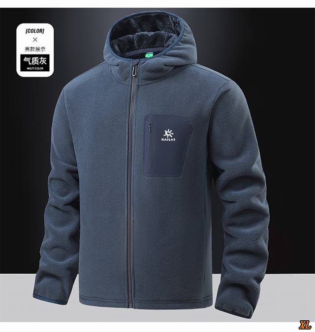 Kailas Exclusive Real Shots of New Trendy Autumn/Winter High-Quality Fleece Hooded Cardigan Sweatshirt/Hooded Warm Base Layer Fleece Jacket. This season's main item, ample stock, highly recommended, high-end quality, classic design, excellent workmanship, classic and versatile, excellent fit.