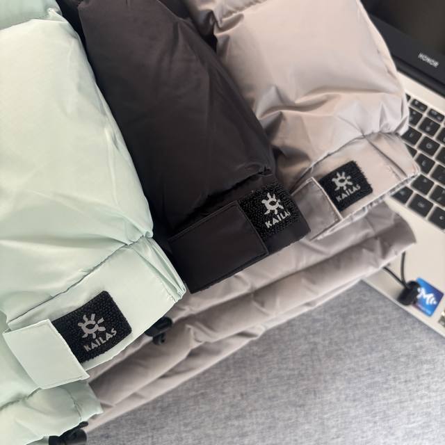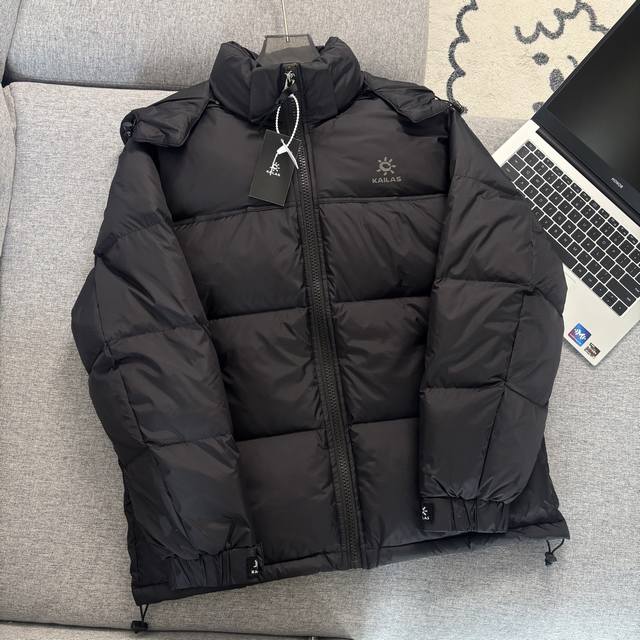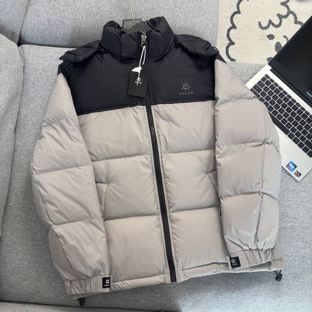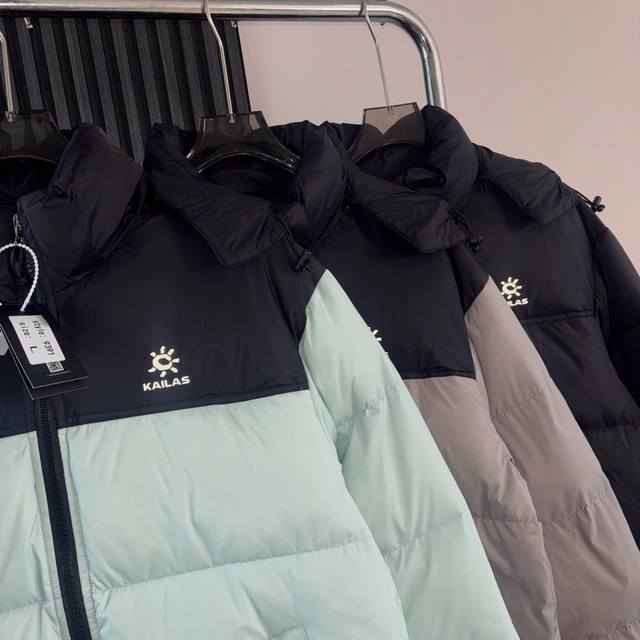 Kailas Hooded Outdoor Down Jacket - Full Set 1:1 Custom Accessories, Custom Three Labels, Yuan Version Hangtag, Logo, Packaging Bag - Made of imported Pertex fabric, with a water-repellent surface treatment, lightweight and breathable, tear-resistant, windproof and water-repellent, lightweight and comfortable to wear without shoulder pressure. The exterior features a structural line segmentation design, making the down clusters more fluffy and warmer without appearing bulky. Equipped with a YKK zipper for improved wearing experience. Detachable hood, unisex and couple style. - Colors: Lake Blue, Khaki, Black. Sizes: M, L, XL, 3XL. Length: 66, 68, 70, 72, 74. Chest: 112, 116, 120, 124, 128. Sleeve Length: 60, 61, 62, 63, 64.
