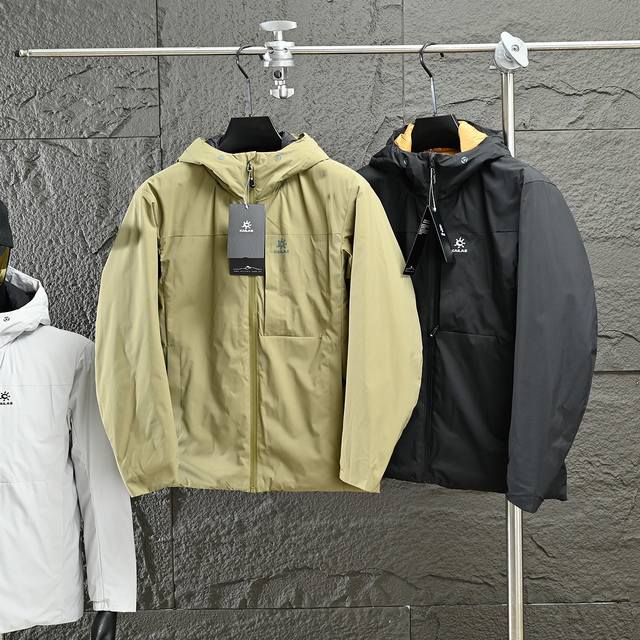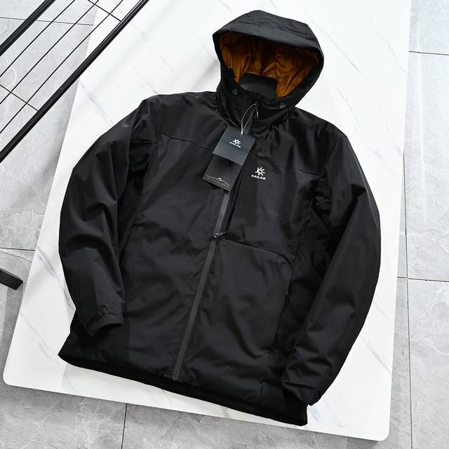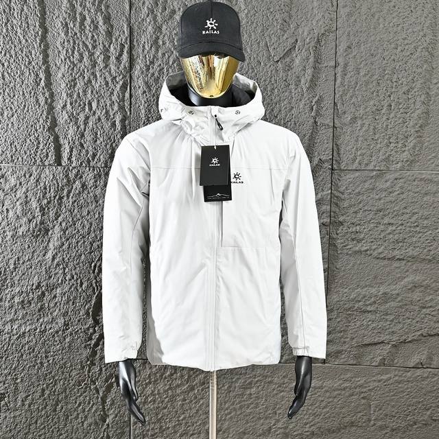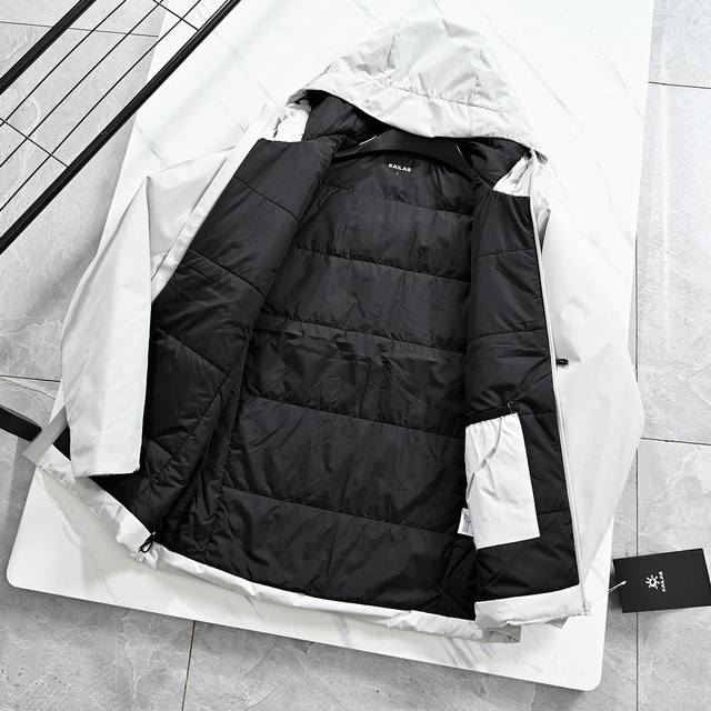 Kailas Men's Winter Hooded Cotton Jacket, featuring an embroidered logo, a comfortable and snug neckline for windproof warmth, convenient and secure side pockets, and elasticated cuffs for a comfortable fit. The jacket boasts a functional windproof and rainproof shell, a warm and waterproof lining, and meticulous workmanship with neat stitching to prevent fleece fraying. It includes a windproof zippered chest pocket, hidden zippered hand pockets for secure phone carrying, a slightly loose fit, and a thick, warm yet not bulky or heavy design. The stylish patchwork design is sophisticated and the craftsmanship is excellent. This jacket offers both a flattering fit and excellent warmth! Fashionable and stylish with a touch of sporty functionality, it's slimming and not bulky