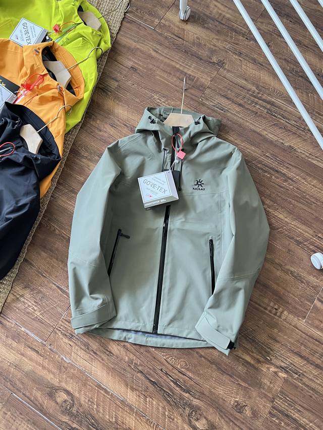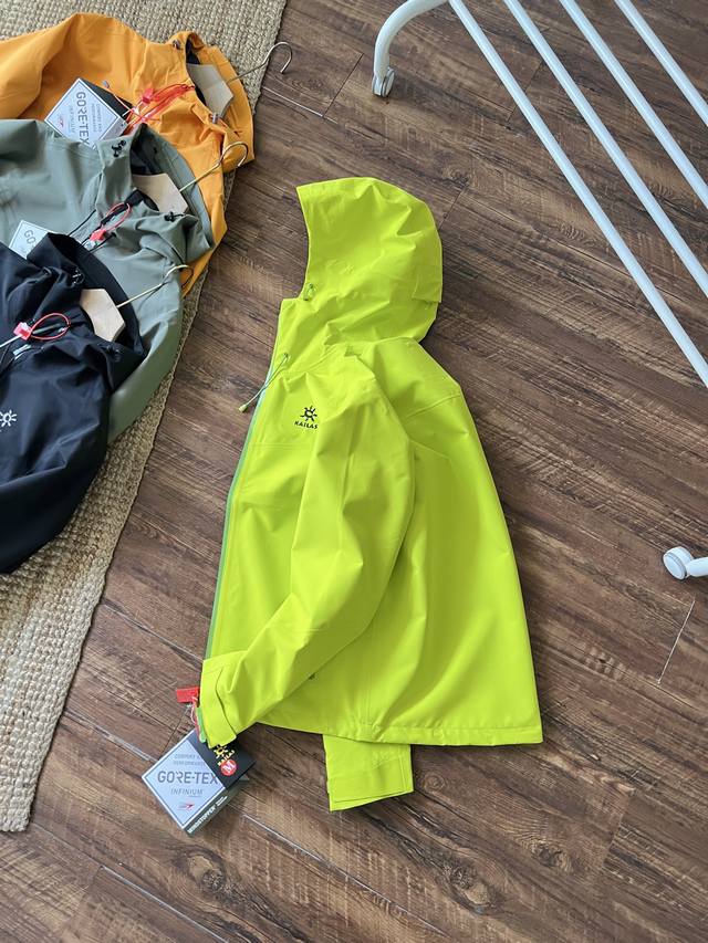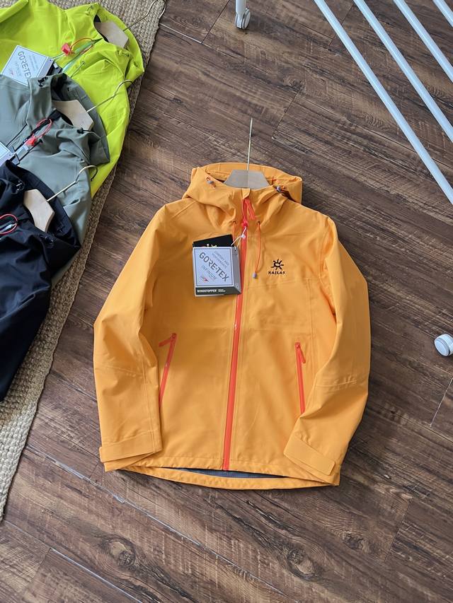 Kailas Outdoor Laminated Hooded Jacket. This V-neck, breathable, windproof, and waterproof hardshell jacket is windproof, rainproof, and durable, making it perfect for a variety of outdoor activities. This fully laminated hardshell jacket is a cult favorite on the platform. The soft, comfortable hardshell fabric features underarm zippers for ventilation. It's incredibly windproof and rainproof for spring and autumn outdoor activities. Whether you're hiking or hiking, this jacket provides all-weather protection. The Gore-Tex waterproof functional fabric ensures the outer layer retains moisture even after repeated washings, while the underarm zippers help retain heat and dissipate moisture. The fully laminated jacket creates a seamless interior with no visible seams! The embroidered logo adds a polished look. The cuffs feature Velcro tabs for adjustable fit. The short front and long back design creates a perfect hip-hugging effect. The hood features an elastic drawstring for a snug fit while cycling, providing complete wind protection.