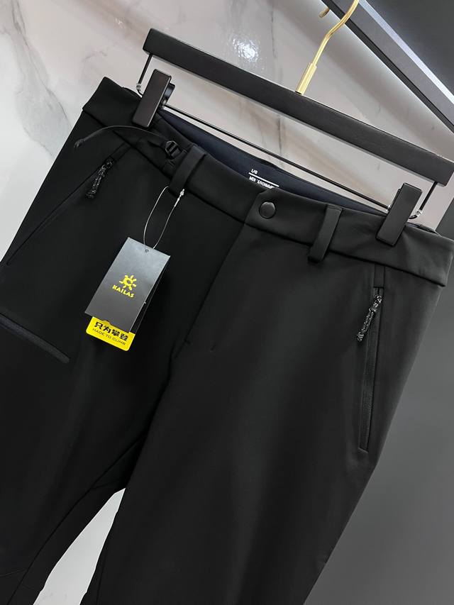 Kailas T10 Fleece-lined Softshell Pants, a hot-selling item at our counter. Durable, suitable for outdoor sports and hiking, men's casual style. Three-dimensional tailoring, ergonomic design. Four large pockets for everyday storage. Two long two-way zippers for increased breathability. Laser-perforated leg openings. Soft and warm fabric for superior comfort. Composite fleece lining provides ultimate warmth and comfort. Excellent breathability and water-repellent properties. Lightly windproof. Size: M-Xxxl