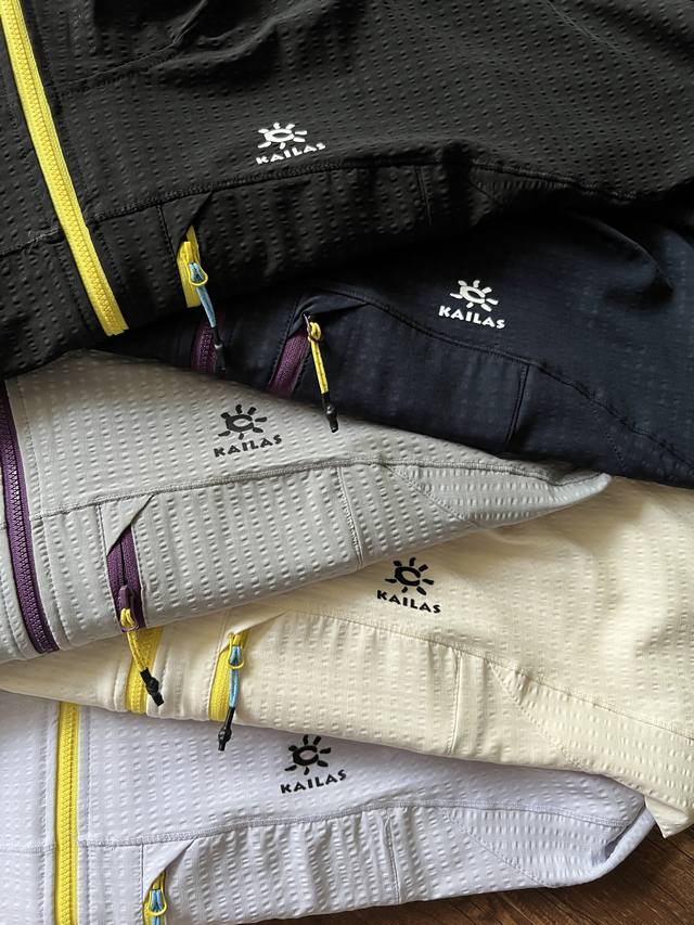Kailas waffle-textured windproof, breathable, wear-resistant, and water-repellent unisex outdoor couple softshell jacket. Combining technology and design for both function and style, this jacket helps you confidently face various challenges. Windproof and water-repellent, it features high-density elastic fabric with a durable DWR water-repellent coating. It protects against light rain, and the water contact angle for moderate rain is approximately 115