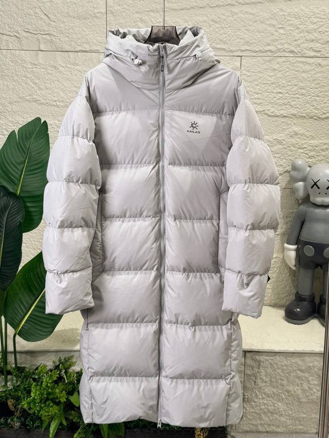 Kailas Whistler Unisex Long Down Jacket with Titanium Foam Bionic Skin Touch Technology, Suitable for Hiking, Skiing, and Travel. Features include: Bionic Skin Touch Technology, a water-soluble biomimetic coating that gives the fabric skin-like bio-reactivity, significantly enhancing wearing comfort; Material: Nylon; Filling: 800Fp goose down (95% down content); Fit: Regular; Features: Titanium foam fabric, lightweight and breathable, prevents down leakage, soft and comfortable to wear; Filled with 800 fill power goose down (95% down content) for high-efficiency warmth; Topfree closure for easy on and off; Double zipper, removable at both the top and bottom for easy on and off without bending over; Long down jacket for comprehensive warmth; Open hem for flexible movement; Side pockets for flexible storage; Award for Outstanding Industrial Performance; Titanium foam fabric, lightweight and breathable, prevents down leakage, soft and comfortable. Filled with 800 fill power goose down, with a down content of 95%, this garment offers highly efficient warmth. The open hem design allows for freedom of movement, and side pockets provide convenient storage. A must-have for cold winters! Keep your winter warm! #Kailas #OutdoorSports #OutfitVideoShoot Colors: Black, Gray, White Sizes: Xs, S, M, L, XL, 2XL Shoulder Width: 55, 57, 59, 61, 63, 65 Chest: 112, 116, 120, 124, 128, 132 Length: 109, 110, 112, 113, 114, 115