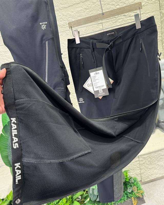 Kailas Wolf Tower Softshell Pants for Men and Women, GTX Windproof, Water-Repellent, Fleece-Lined, Warm, Outdoor Sports, Ice Climbing, Half-Zipper Pants, Couple Outdoor Hiking, Rock Climbing, Casual Pants. GTX fabric penetrates snow and ice, blocking the intrusion of biting cold wind and quickly wicking away sweat to prevent heat loss. The outer layer features an ultra-durable water-repellent treatment for long-lasting splash resistance. The inner lining is lined with comfortable and warm fleece, providing stable warmth in frigid environments. The thigh side zipper design allows for quick ventilation and heat dissipation when it's hot. Small-aperture spliced wall with abrasion-resistant fabric prevents crampon damage. The raised back waist design prevents the lower back from getting cold during exercise. The waistband has an adjustable belt design to accommodate different body types. The side zippers at the hem have an elasticated design for easy insertion and compatibility with different types of shoes and boots. Hidden bootie hooks at the ankles better secure the shoes and boots, preventing wind and snow from getting in. Classic fit with a three-dimensional cut. Diamond-shaped crotch design reduces crotch constriction and allows for flexible movement. Color: Black Sizes: S, M, L, XL, 2XL Waist: 80, 84, 88, 93, 98 Hips: 101, 105, 109, 114, 119 Length: 104, 106, 108, 110, 112 Knee: 21.6, 22.4, 23.2, 24, 24.8 Leg Opening: 19.6, 20.4, 21.2, 22, 22.8 Front Rise: 20.5, 21.5, 22.5, 23.5, 24.5 Back Rise: 30, 31, 32, 33, 34