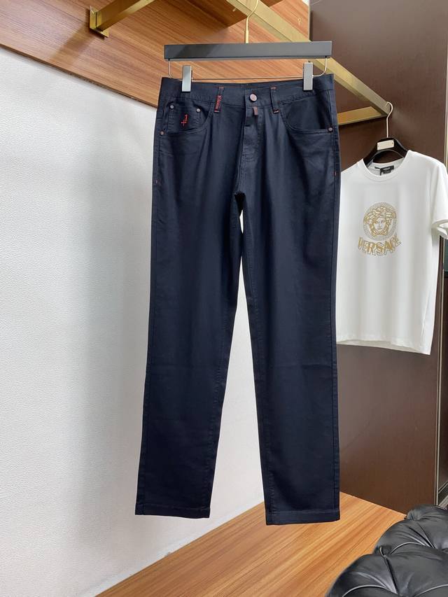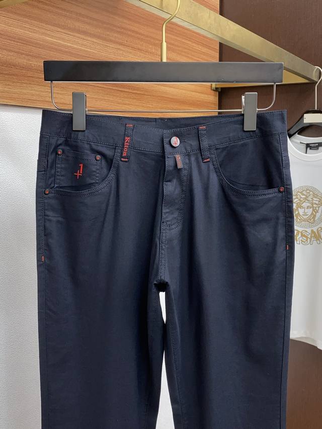 Kiton 2025 Spring/Summer New Custom Five-Pocket Casual Pants. Clean and crisp cut, full of urban style. Made with high-end fine-spun fabric, soft and dry to the touch, with a crisp and stylish fit. Exquisite hardware, very attractive for both business and casual occasions. So many top-quality materials create an unparalleled high-end product, the first choice for high-end fashionistas. Sizes: 30-38.