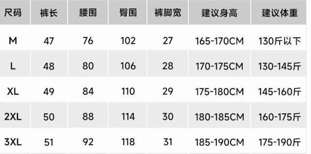Size: M~3Xl See Figure 9 for detailed data