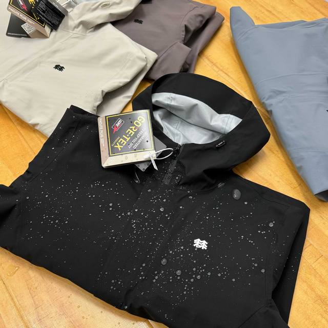 curved extended cuffs, waterproof zipper pockets, hooded style, effective windproof, front and back adjustable to improve fit and protection, heat-pressed brim, high-end appearance