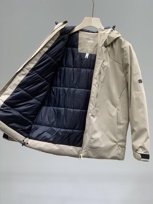 's official website. It's incredibly lightweight yet boasts excellent loft and warmth. Suitable for various outfits, including sportswear and casual wear, it's even suitable for commuting in unpredictable weather. The classic color scheme reflects a natural color philosophy, understated and elegant. Made with custom fabric, it has a very high-quality feel, as clearly seen in the photos. The lightweight sports design features a clean and streamlined cut and elegant craftsmanship. The fabric is ultra-light, ultra-soft, and extremely lofty, with good elasticity and warmth, offering superior loft and breathability. The entire garment is treated with anti-static agents and is highly waterproof, easily withstanding light rain. Features include a fully taped, fleece-lined interior, compartmentalized design, adjustable Velcro cuffs, and only two zippered pockets on the front chest, a minimalist style that is very popular.
