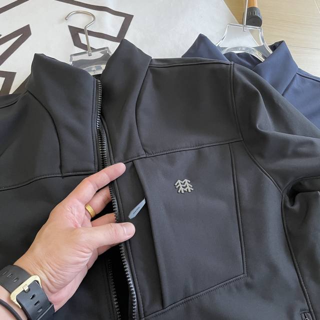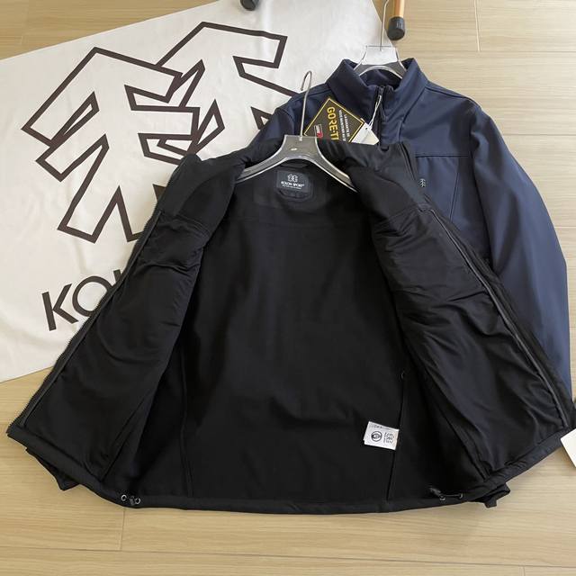 Kolon Sport Two-Tone Fleece-Lined Softshell Jacket with Stand Collar - This is a warm softshell jacket designed specifically for the damp, cold winds of autumn and winter. The outer shell is made of a three-proof fabric that is windproof, waterproof, scratch-resistant, and abrasion-resistant. The inner lining is a thin fleece composite, ensuring warmth and breathability. Details and pictures are actual photos of the bulk order. The double zipper design with contrasting colors provides good breathability. The hem has adjustable windproof drawstrings on both sides for free adjustment. The collar is designed to maintain comfort and structure around the neck, while the inner lining is lined with thin cotton for support, preventing it from becoming soft and sagging after repeated washing. The fit is good, the fabric is crisp, wrinkle-free, and has a high-quality feel. The stand collar design makes it easy to match with various outfits, suitable for urban everyday wear and light outdoor activities. The black and blue colors are classic and elegant, and the simple style makes it versatile and easy to match with pants. It can fit up to approximately 205 catties. Colors: Black, Blue. Sizes: M-3XL. Size M: Length 69.5cm, Chest 114cm, Shoulder 44cm, Sleeve 61.5cm. Recommended weight: 105-125 lbs. Size