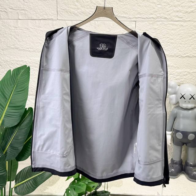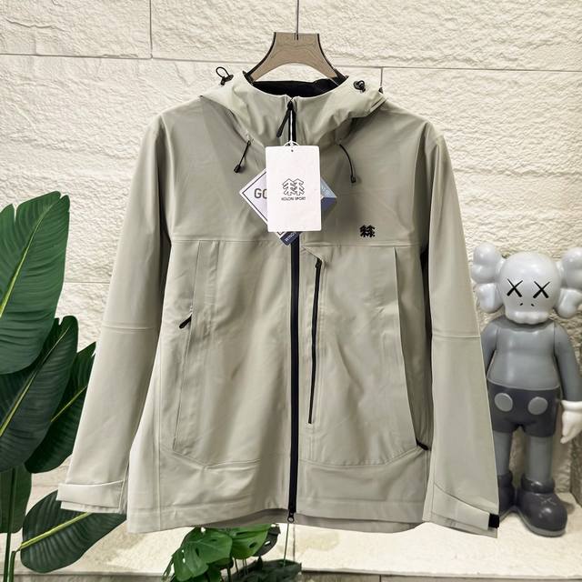 Kolon Sport Unisex Outdoor Hooded Windproof Waterproof Hardshell Jacket, Couple Style, Fully Seam-Sealed Outdoor Sports Softshell Jacket. This multi-panel, 3D-cut windproof jacket is made of 3L composite elastic fabric, which is lightweight, windproof, and water-repellent and breathable. The simple design and stylish cut provide a comfortable fit, suitable for urban and light outdoor activities. It features an adjustable hood for comprehensive head protection, adjustable cuffs with Velcro closures, and an adjustable hem to prevent rain from getting in. Multi-directional waterproof, breathable, and durable, it copes with changing weather conditions and enhances athletic performance. The DWR treatment ensures long-lasting waterproofing, condensing water droplets on the fabric, and the 3D-shaped design provides a better fit and comfort.