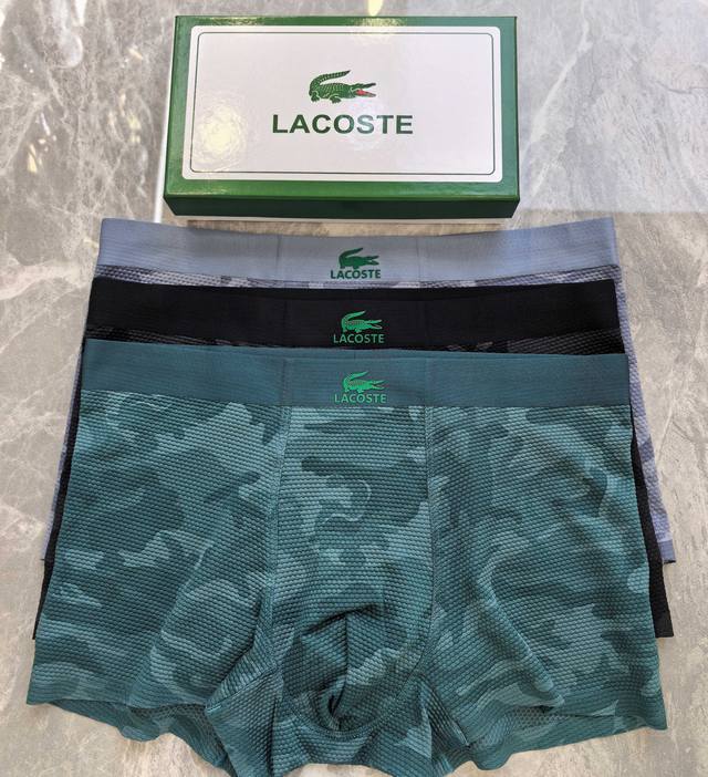 Lacoste (1 box of 3) ~ Original quality! Essential men's boxer briefs! High-grade ice silk material, scientifically blended with 83% nylon and 17% spandex using seamless cutting technology, silky smooth, breathable, and comfortable! Underwear should not be compromised; it must be soft, breathable, and comfortable. The waistband features a logo decoration with a printed plastisol printing process! The smooth, close-fitting texture feels even more delicate. High-end custom dyeing and color fixing ensure outstanding quality. Sizes: L, XL (120-200 lbs). Note: Underwear is non-refundable and non-exchangeable.
