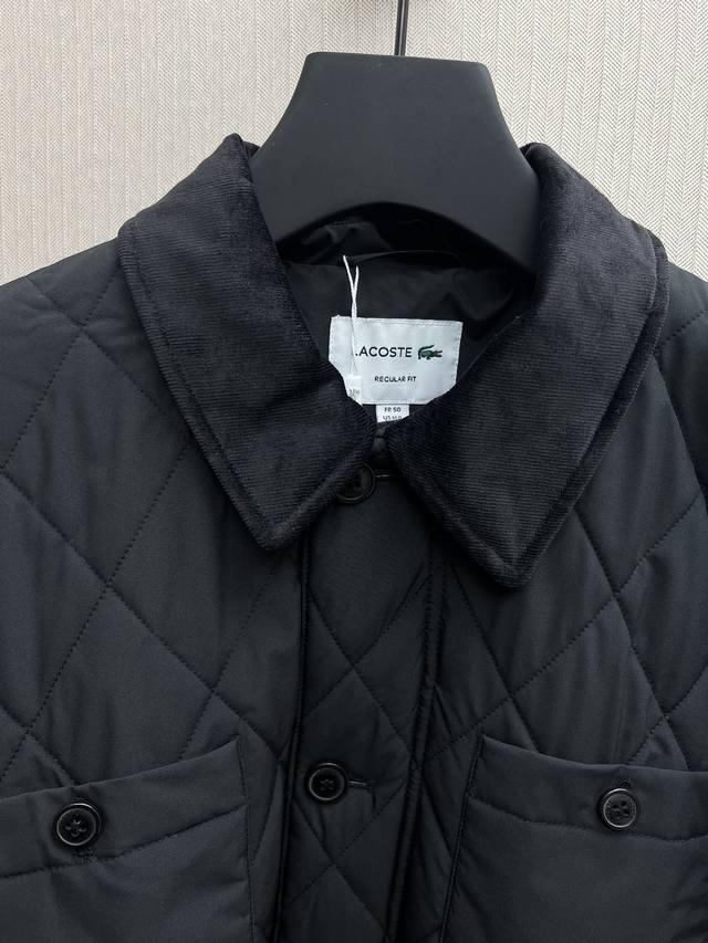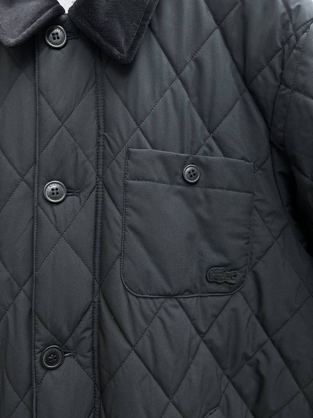 / Lacoste 25Ss Fall/Winter Classic Quilted Diamond Lapel Jacket with Diamond Pocke