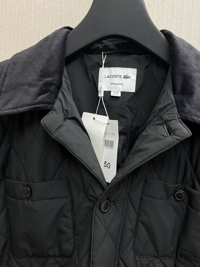 Lacoste 25Ss Fall/Winter Classic Quilted Diamond Lapel Jacket with Diamond Pocket on Chest, High-Quality Men's Style (Ddd) Sizes: M, L, XL, XL, DDD