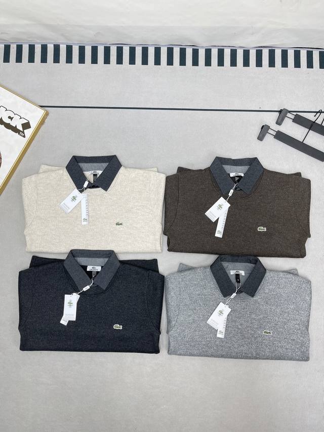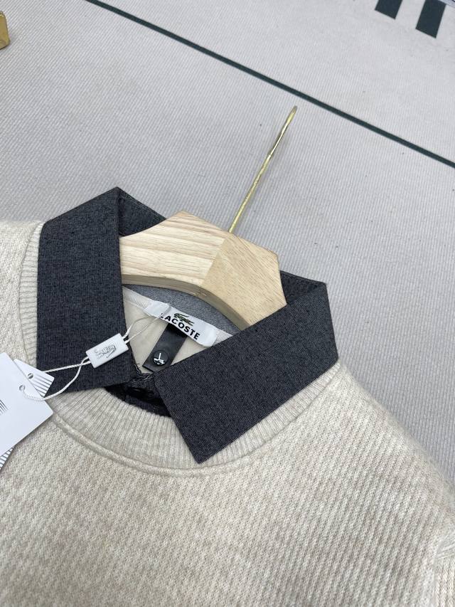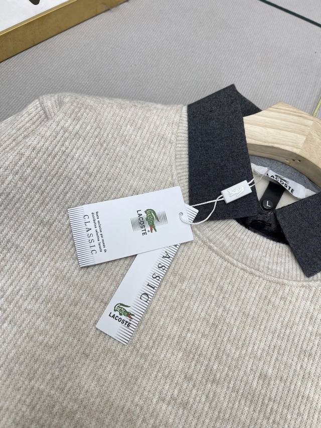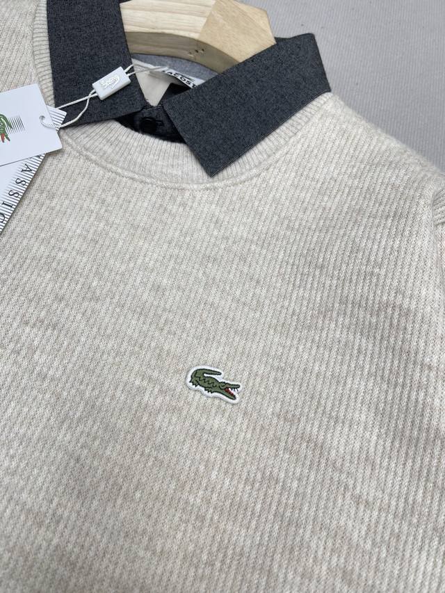 Slim Fit Shirt Round Neck Pullover Faux Two-Piece Sweater! This is the first thing that comes to mind when I think of simple winter outfits! This is Lacoste's latest versatile sweater that suits everyone! The feel and texture are truly amazing. Whether worn alone or as an inner layer, it maintains a neat cut and looks particularly classy! Unlike previous Lacoste styles, this is a youthful and casual style that will definitely sell well!