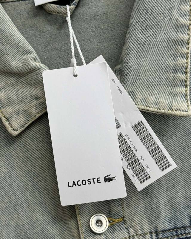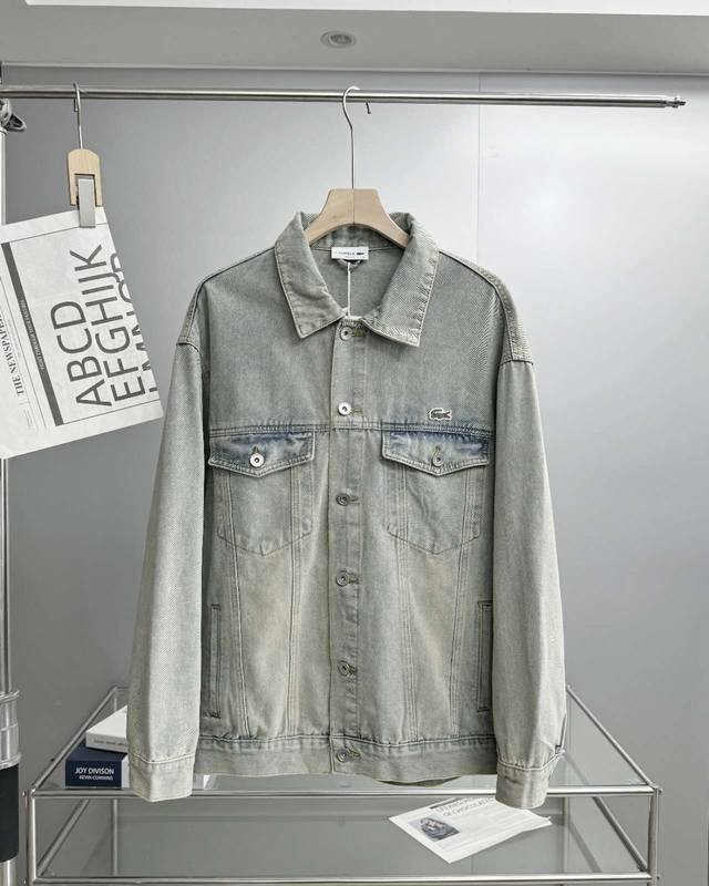 ) A high-quality, thick denim jacket from Lacoste France. Priced at over 1810 on G-brand website. Made with 100% custom-supplied denim! Patchwork design. Purchased directly from the official website and custom-made. 1:1 replica denim fabric, not ordinary denim. Special washing process for a structured and flattering fit. Exclusive custom-made hardware and accessories, including buttons, leather labels, and woven labels. The logo on the chest is meticulously embroidered with thousands of stitches. Exquisite workmanship, neat stitching, and perfect details. The complex, traditional weaving method and natural dyeing are difficult to achieve with mass industrial production. The high-quality fabric feels comfortable against your body. The overall denim texture is very crisp and stylish. Good denim fabric is truly resilient. All accessories are high-end custom-made. Made in a large factory with virtually no flaws. Recommended by street style icons!
