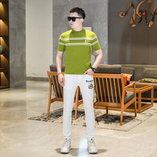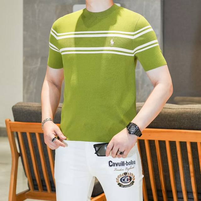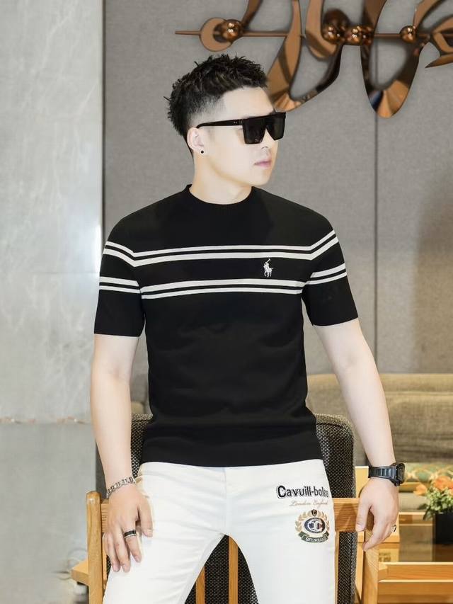Lalp* Laure* Ralp & Laure 2025Fw Autumn/Winter New Men's Fashion Casual Imported Mulberry Silk Short-Sleeve Knitwear. A stylish and timeless piece that always attracts attention with its unique flair. Made with custom-supplied Piquet knit fabric, the quilted design creates an exceptionally smooth and delicate feel, free of any roughness, making it incredibly comfortable and breathable to wear. The classic straight-cut double-needle hem and ribbed knit cuffs are impeccably tailored, creating a sophisticated and luxurious feel. The fabric is thick and full, with a brilliant sheen. Every detail is an embodiment of luxurious allure. Color: As pictured. Sizes: M-3XL.