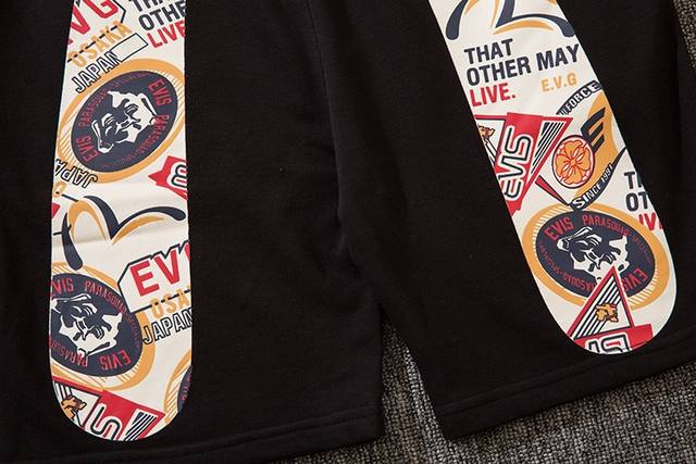 Large M badge cherry blossom Buddha head print shorts, terry fabric, black, size