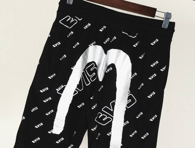 Large M letter printed shorts, Terry thin sweater material, black, size: M-Xxxl,