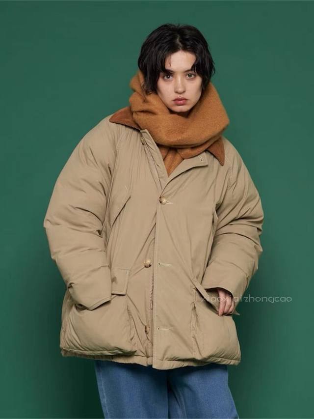 ) Core Style and Design: Featuring a trendy retro hunting jacket silhouette, with a corduroy collar adding a vintage feel; windproof ribbed cuffs, a fleece lining paired with an outer protective layer, balancing style and practicality in every detail. Warmth and Protection: Filled with 260g of 90% duck down, providing excellent warmth; the outer fabric is made of water-repellent nylon, suitable for light rain, offering both comfort and basic protection.